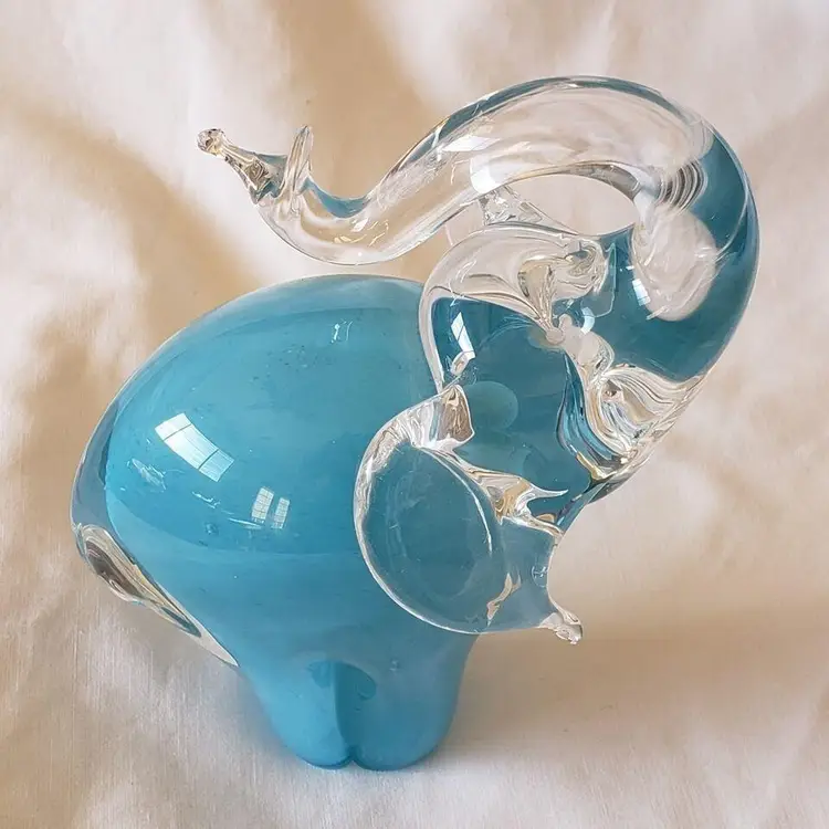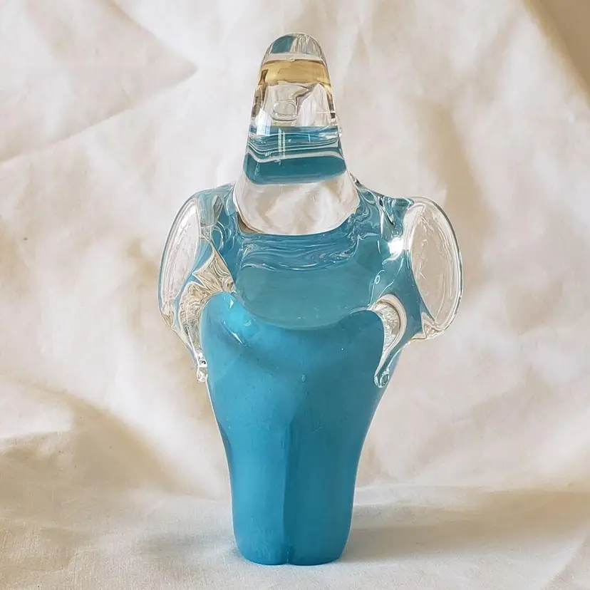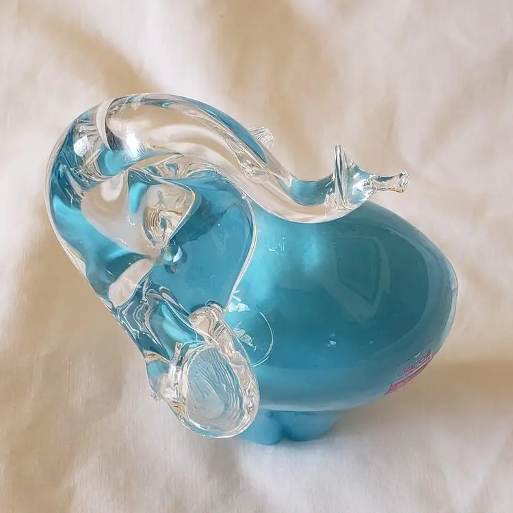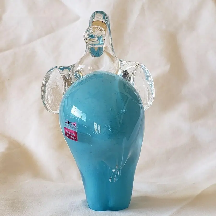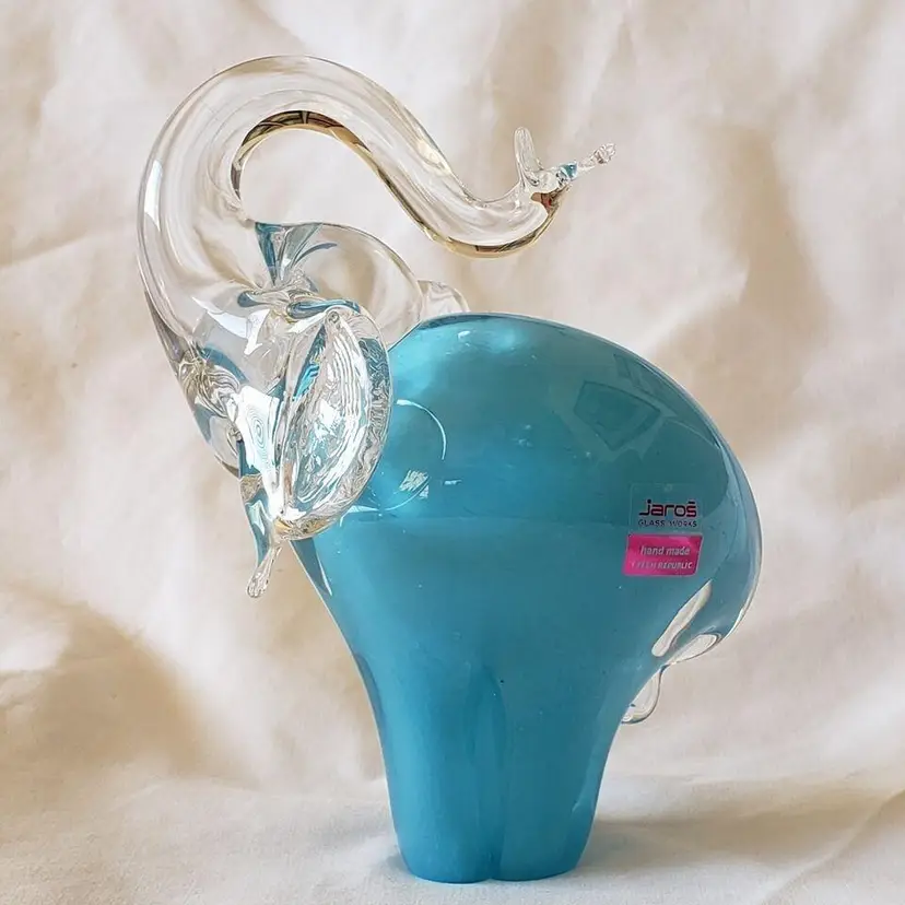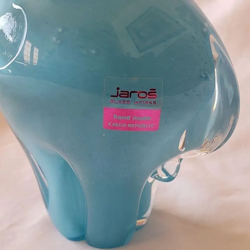 Art Glass Elephant Jaros Glass Works Paper Weight - Made Czech Republic 5 1/2" Tall approximately, does have original sticker. New condition with manufacturer flaws including bubbles in glass and there is sticker residue on bottom otherwise no signs of use. Please view all photos as they are part of the description and please ask questions prior to purchase when possible.