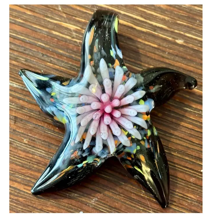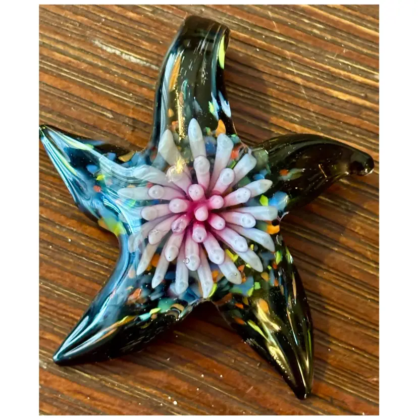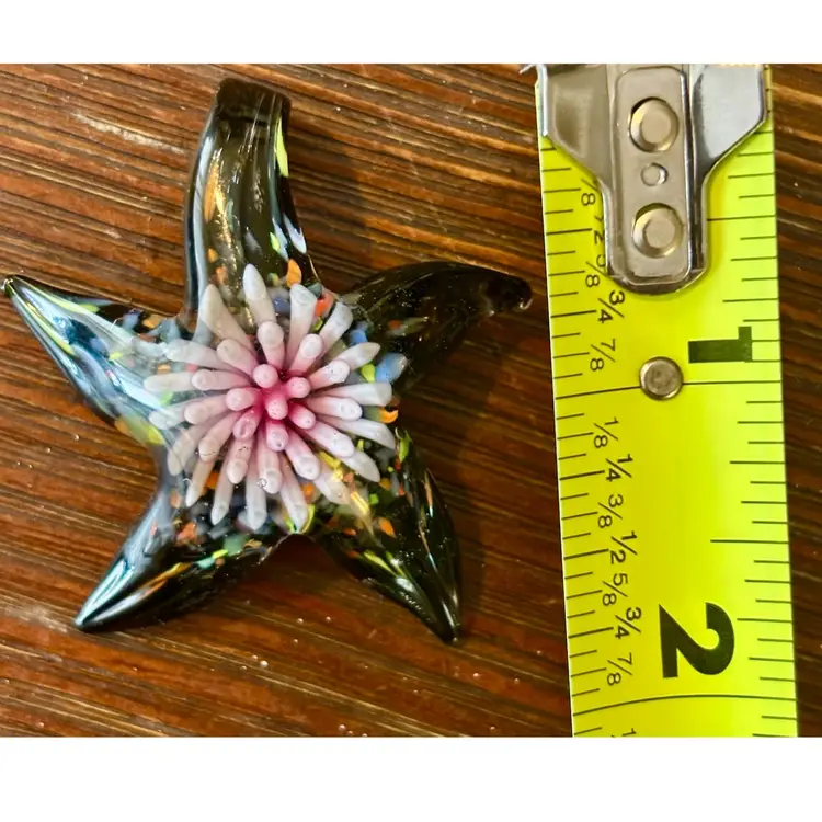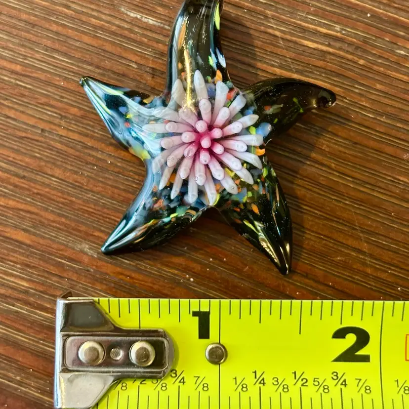 Approx. 2”x 2” Can be worn as a pendant in a necklace or hung as a decorative piece or as an ornament! Very pretty photos don’t do it justice!