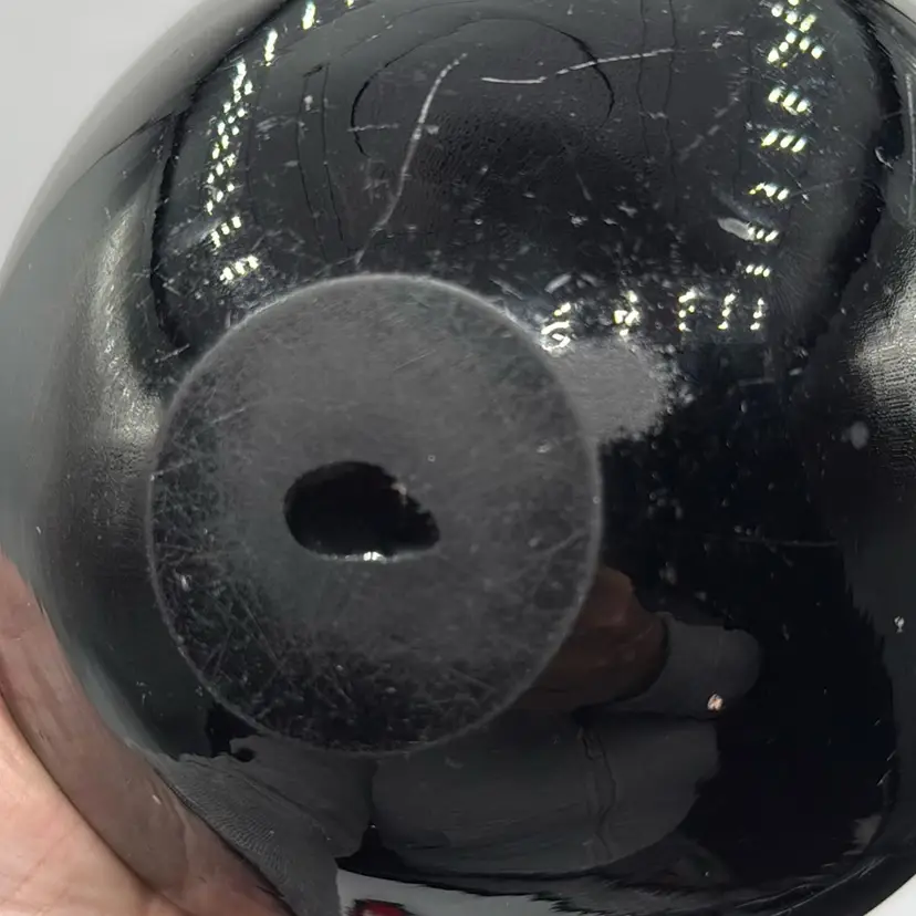 7 1/2” x 3” bottom is scraped up pretty good. Minor scratching on inside small chip on top