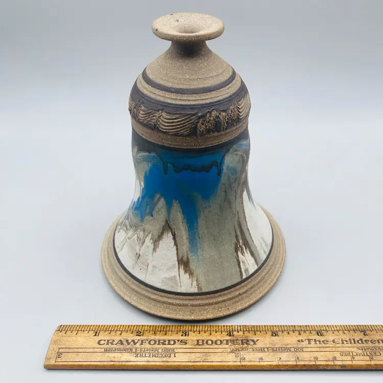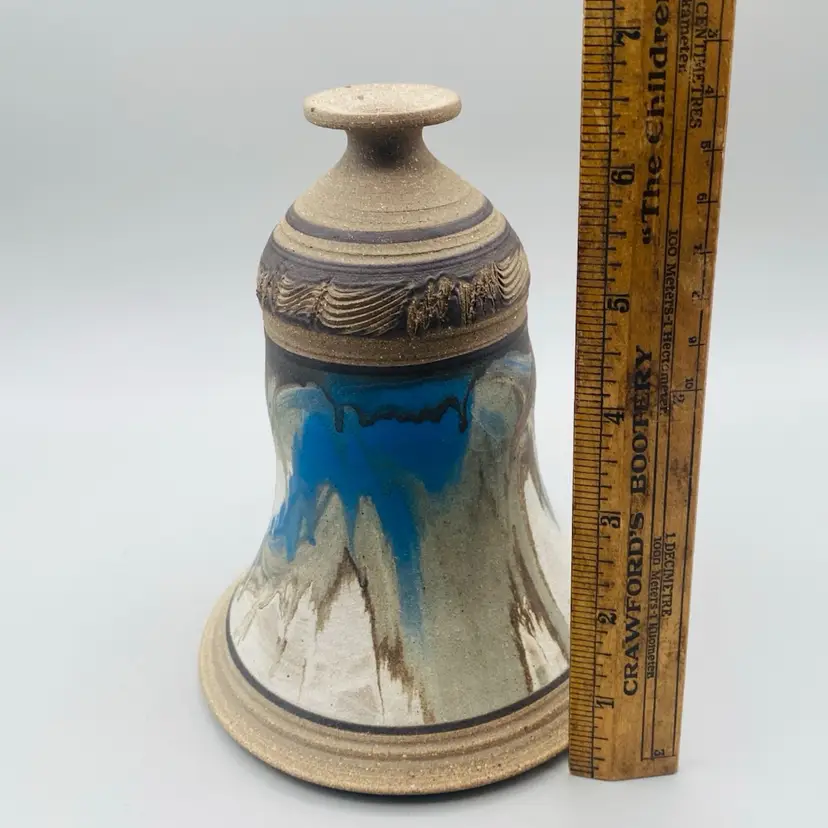 Art Pottery Vase Vessel Blue Green Earthy Tribal Indigenous Decor Artist Signed