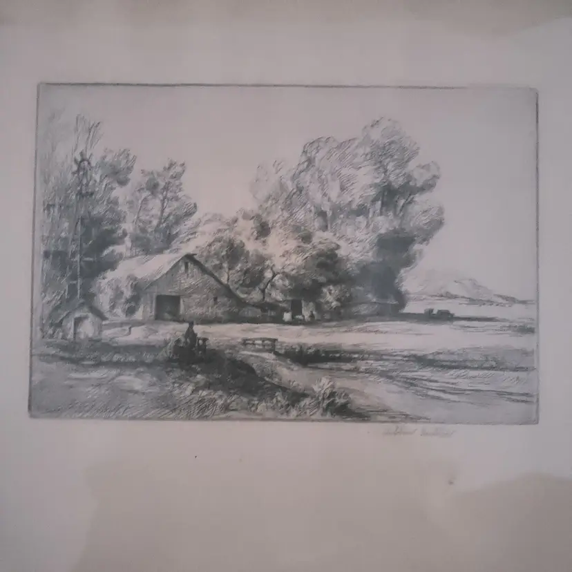 Artist: Arthur Millier Unit of Sale: Single Piece Signed By: Arthur Millier Image Orientation: Landscape Size: Small Signed: Yes Custom Bundle: No Title: Farm with Water Tower Material: Paper Certificate of Authenticity (COA): No Framing: Framed Original/Licensed Reprint: Original Subject: Farm with Water Tower Personalize: No Type: Print Style: Impressionism Theme: Art Features: Limited Edition Production Technique: Etching Handmade: Yes Time Period Produced: 1925-1949