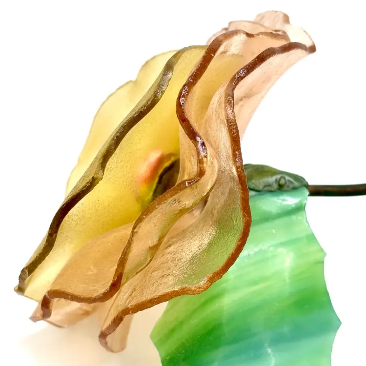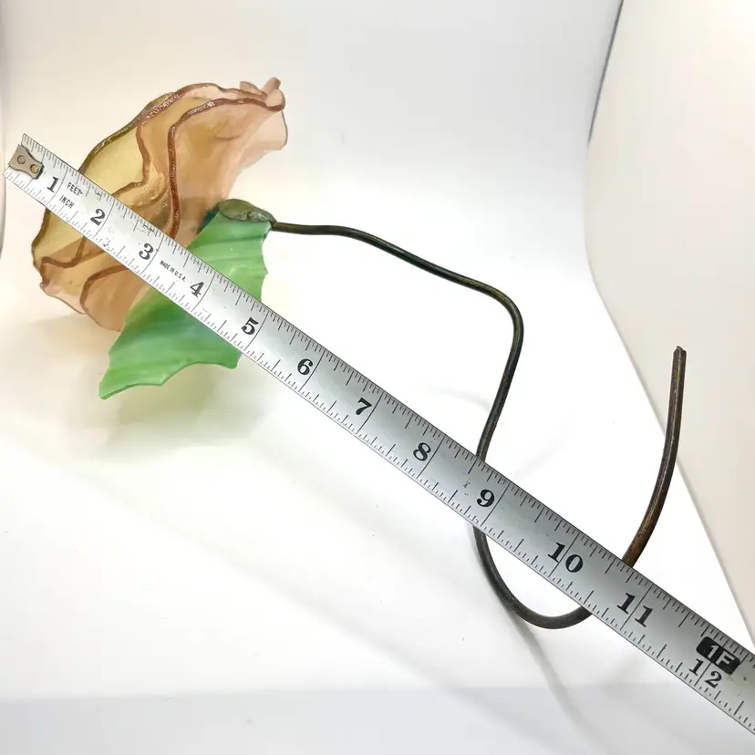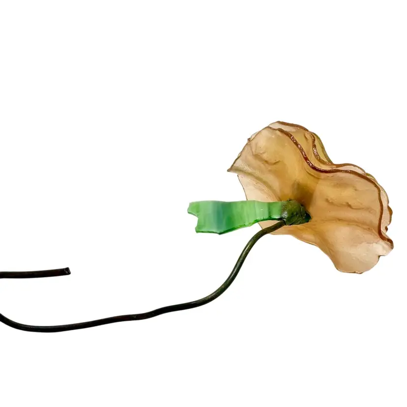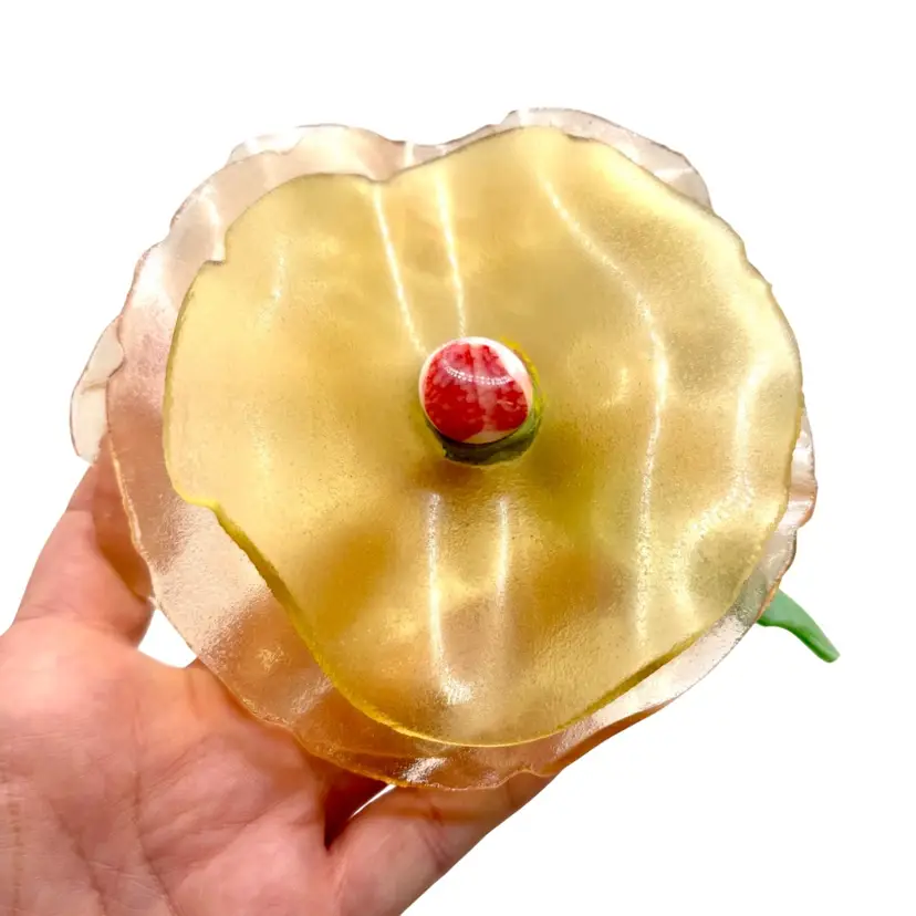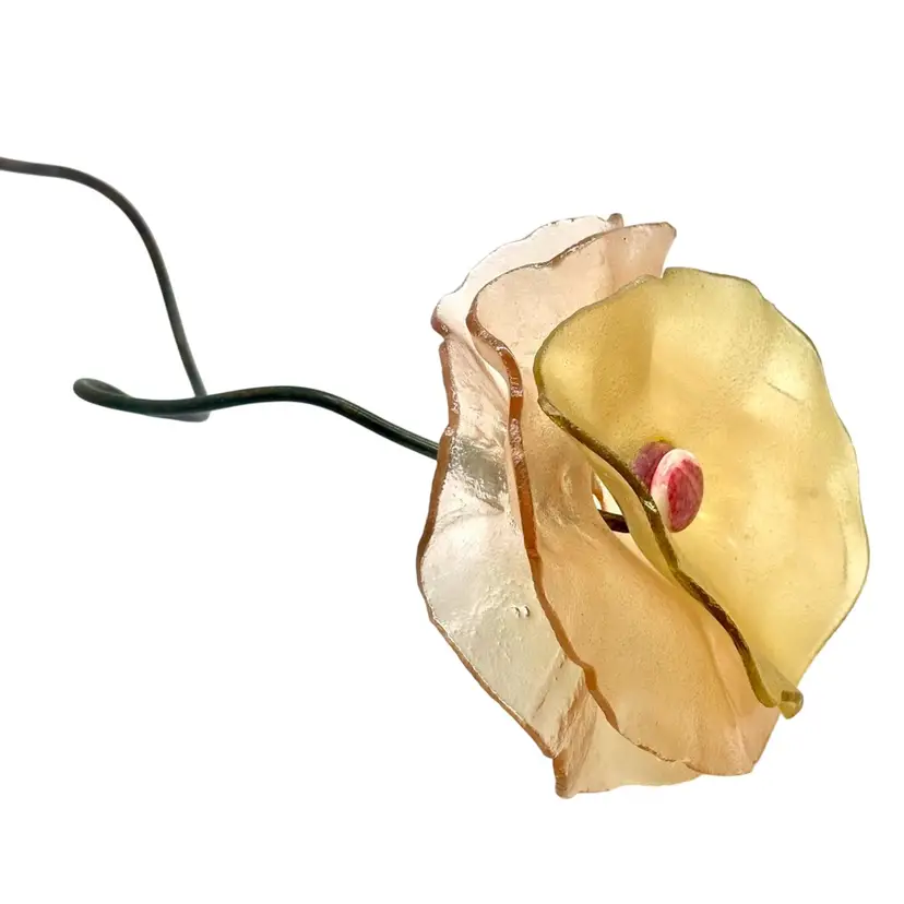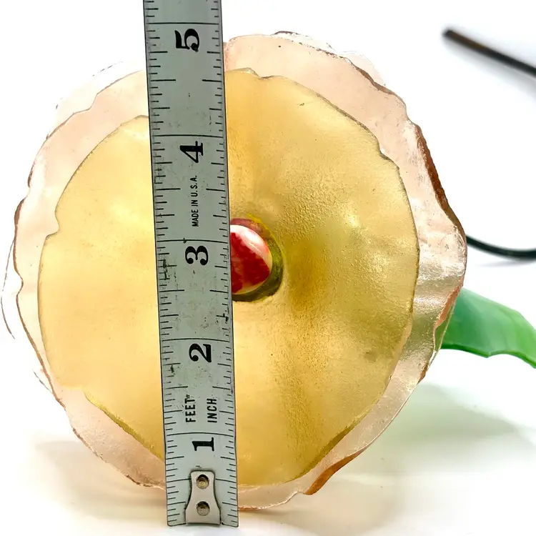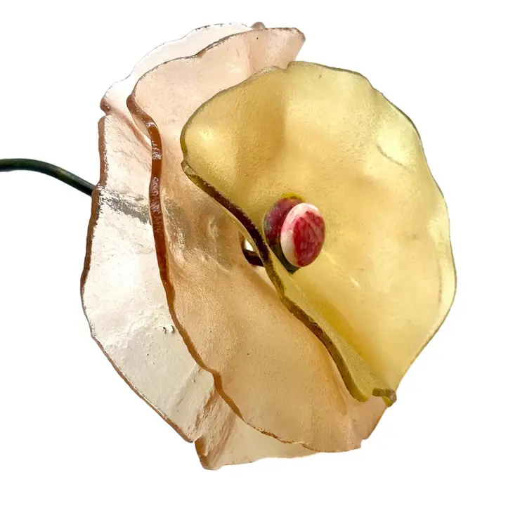 Multilayered, light pink and yellow, three tiered flower with red centre No markings Flowers are 5” wide Whole flower is 11” Good condition