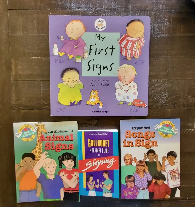 Mixed authors ~ Mixed Titles ~ Mixed Publishers 1 Board Book and 3 Paperbacks English & American Sign Language Books are for all ages and are in EUC with minor signs of use.