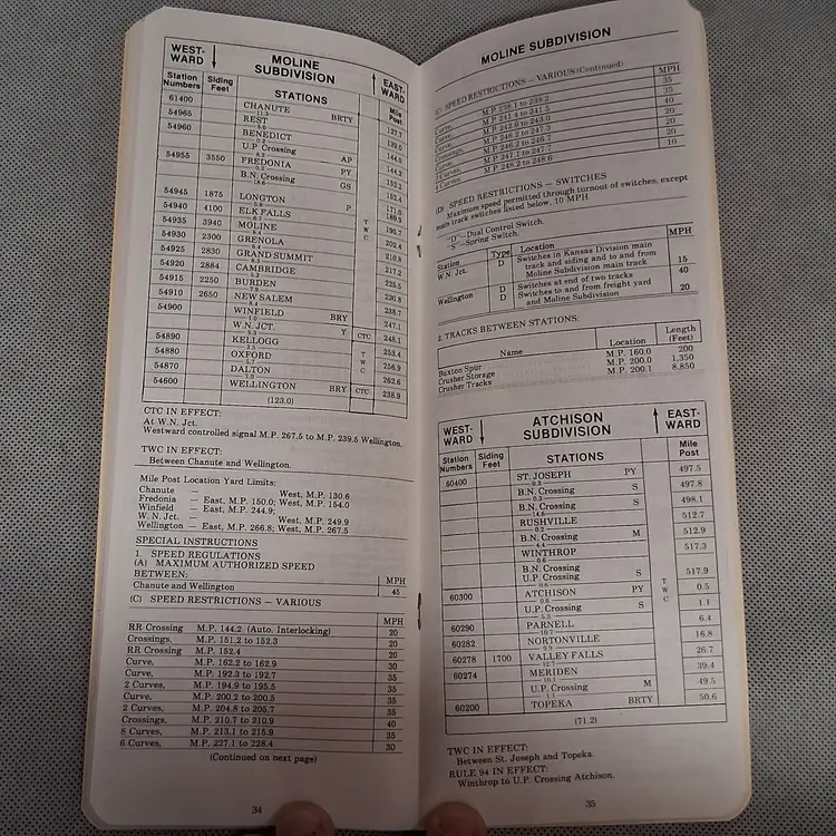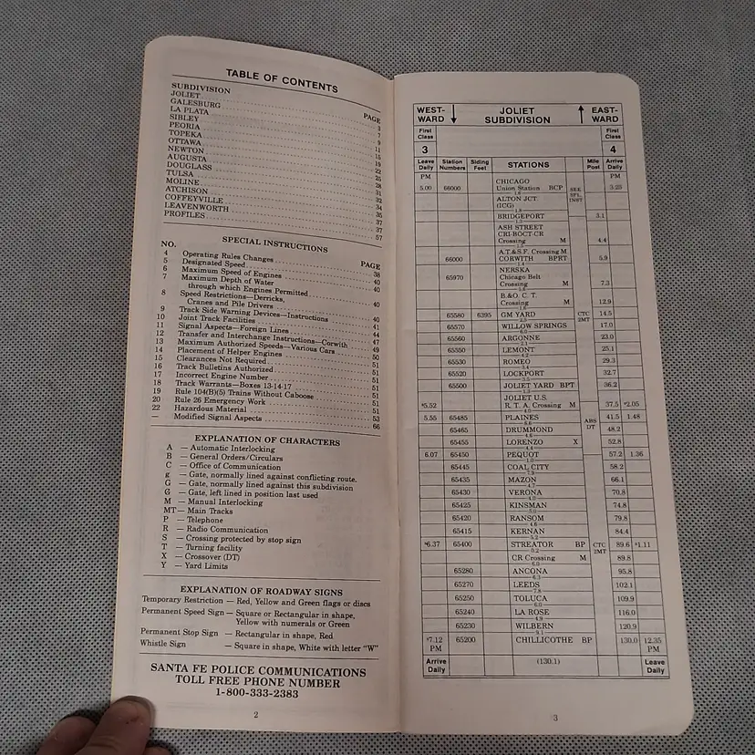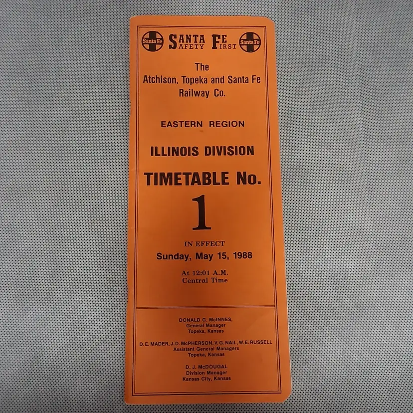 Vintage Railroadiana Atchison Topeka Santa Fe Railway Employee Timetable No 1 Illinois Division Effective May 15, 1988 68 Pages Good Condition Measures 4 1/8" x 10 1/2" Estate Find Thank You For Looking