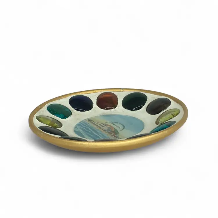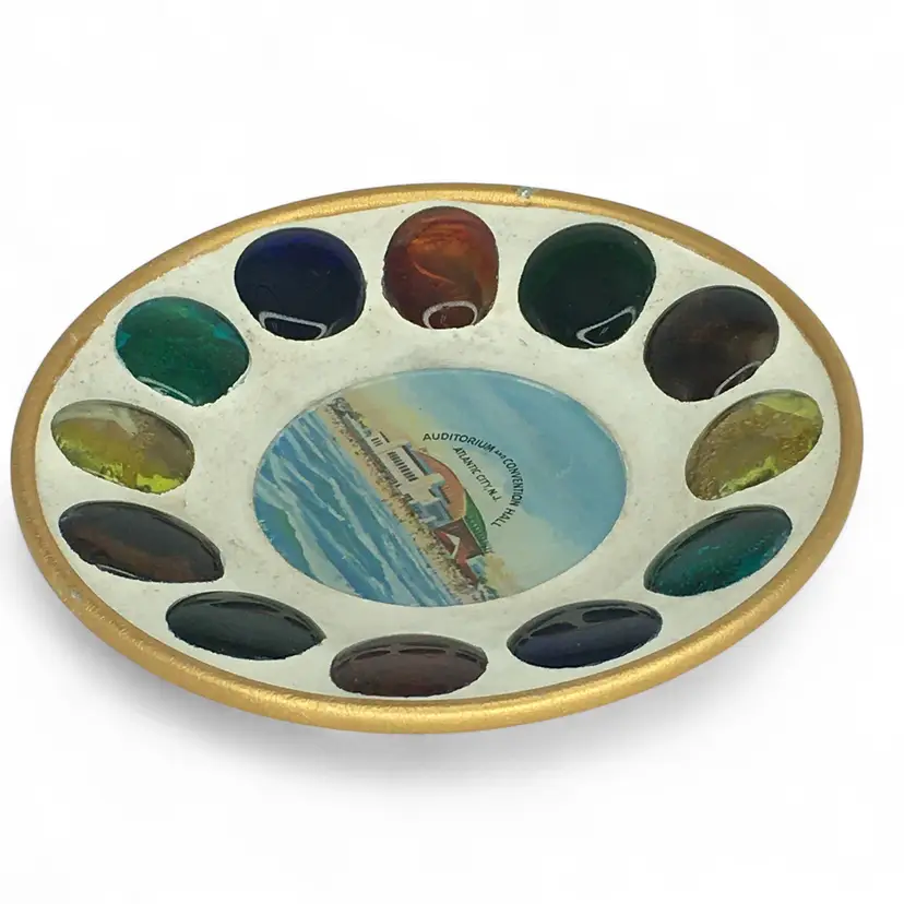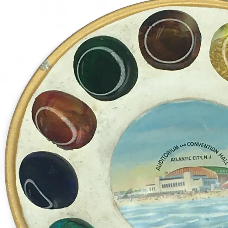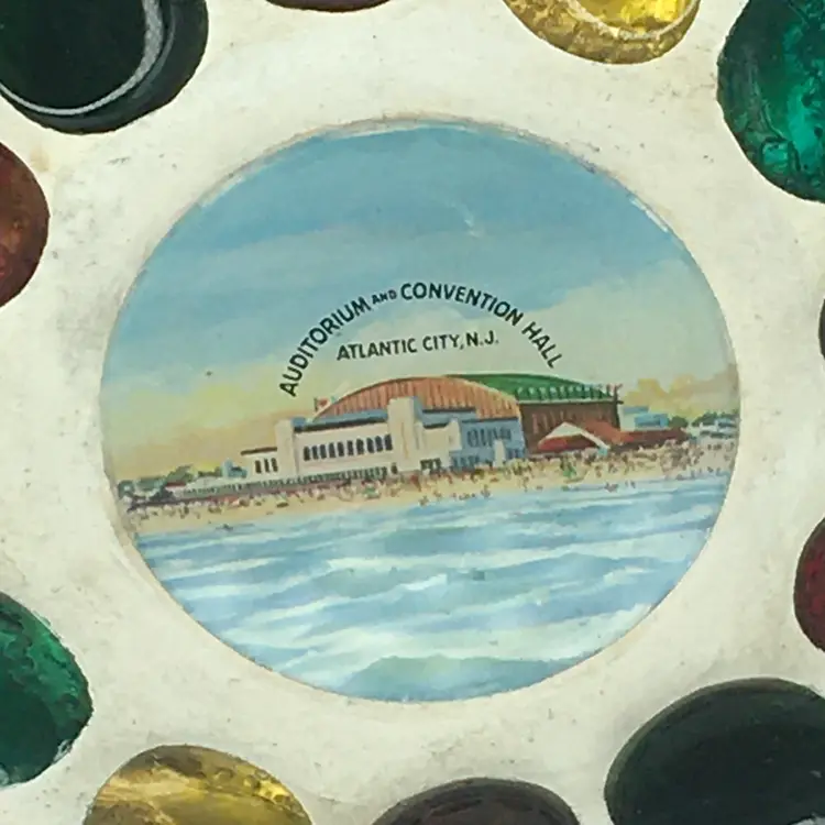 Details: ** Design: Auditorium and Convention Hall, Atlantic City, N.J. ** Manufacturer: Specialty Industries (a division of AmTel, Inc.) ** Country of Origin: Made in Japan ** Material: Metal & plaster with raised glass cabochon “jewels” accents ** Finish: Textured gold-tone back