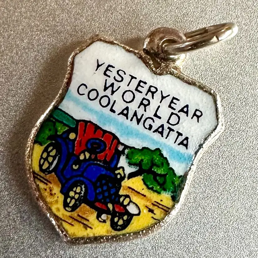 Australia - Yesteryear World Coolangatta - Vintage Enamel Souvenir Travel Shield Bracelet Charm - Silver Plate