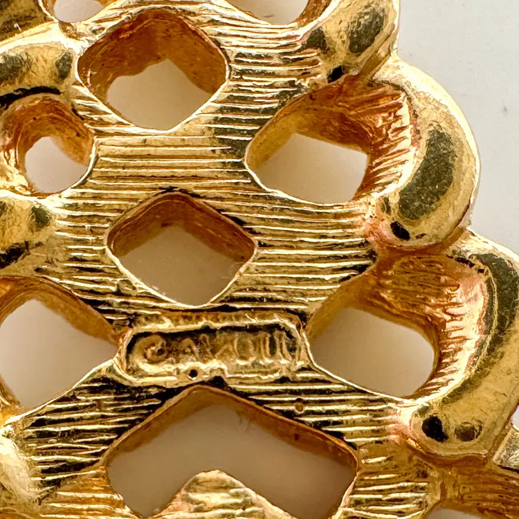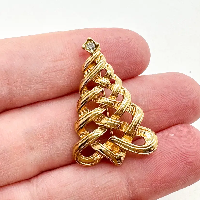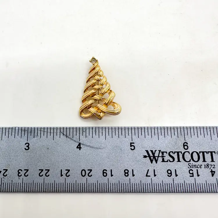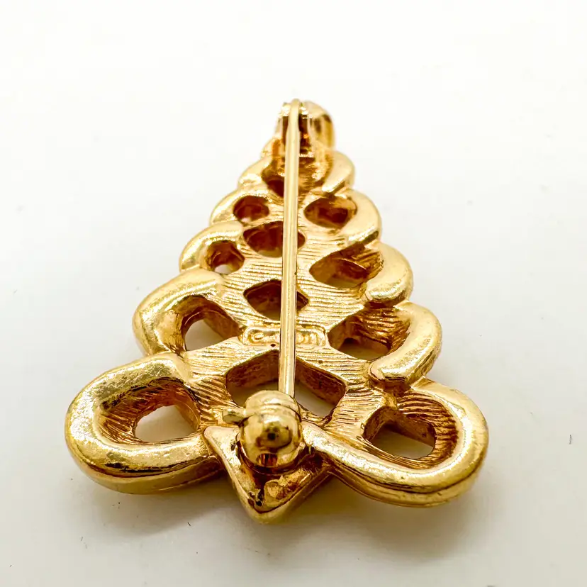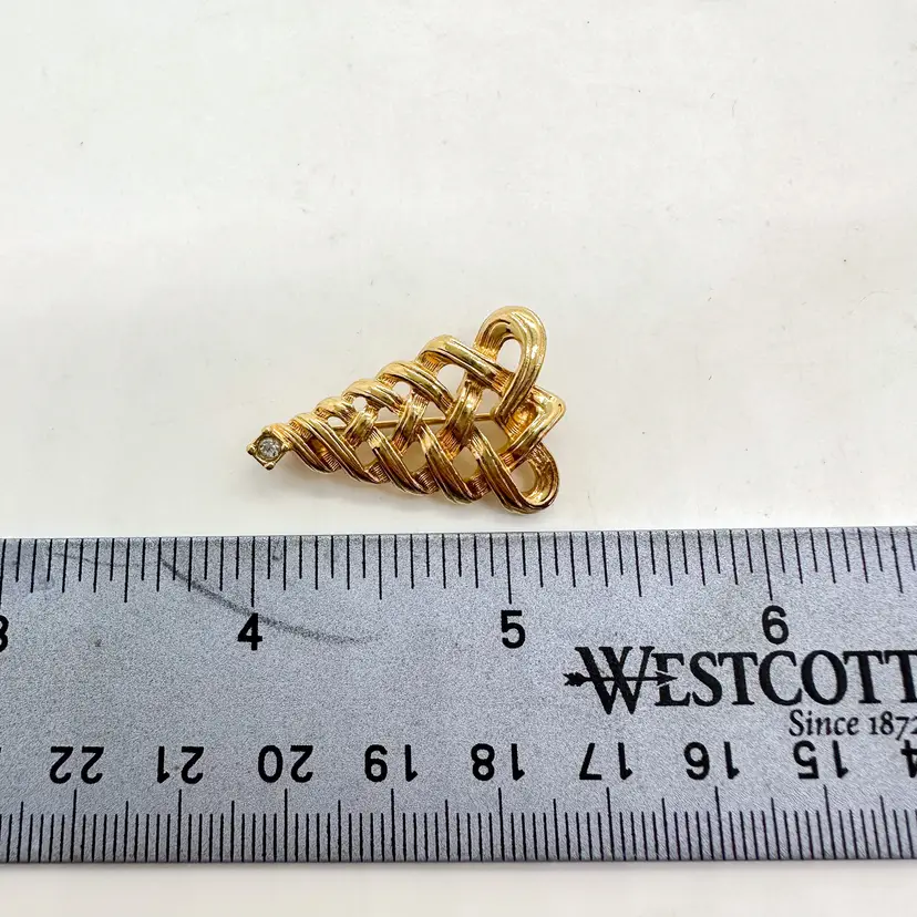 Features a clear crystal stone in the top 1.25 in, small Pin is straight and functions properly Signed Pre-owned, very good condition, minimal signs of wear appropriate for age and use, see all photos