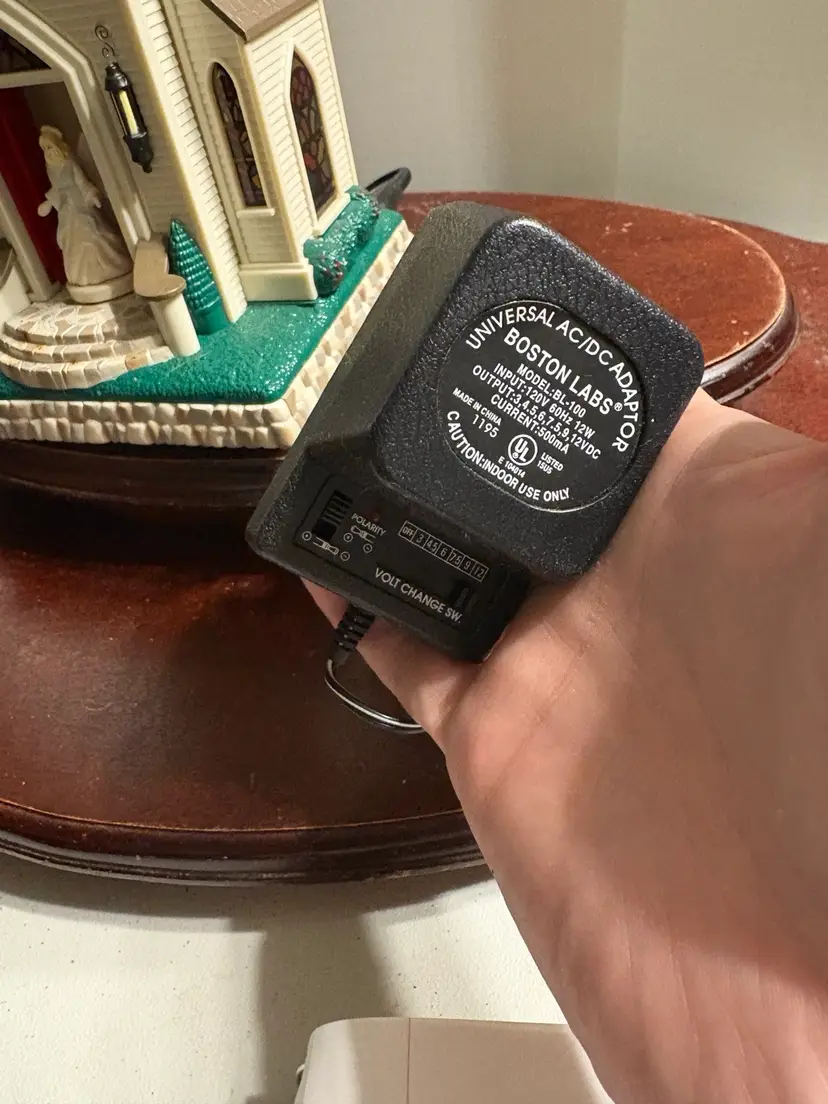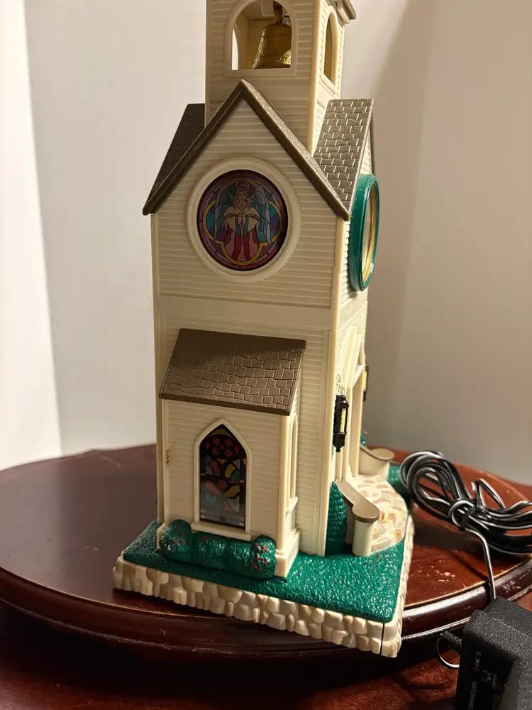 2000, includes original box, instructions and adaptor charger. Plug controls the lights and they do work. Has battery compartment for 3 C batteries. Batteries control music and clock. The battery compartment is untested.