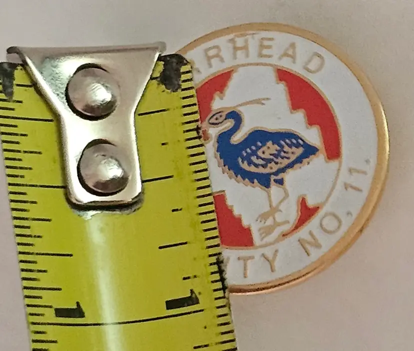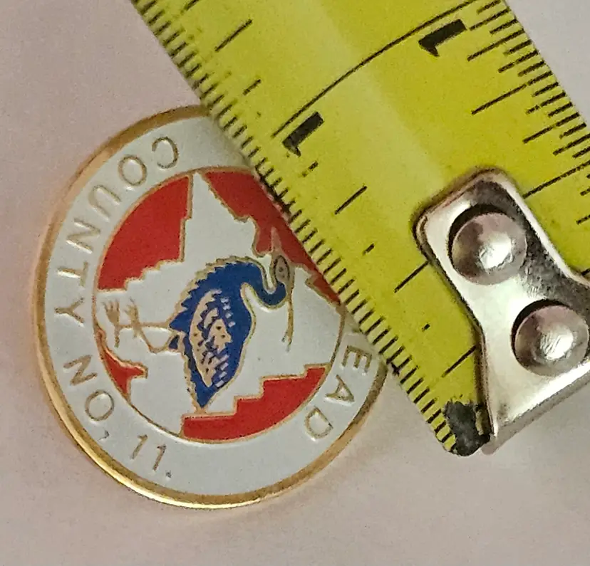 The product is a collectible souvenir pin from Barrhead County in Alberta, Canada. It features enamel detailing and is designed as a lapel pin for display. This item would make a great addition to a collection of souvenir items or travel memorabilia. The design and craftsmanship of the pin suggest that it was made in Taiwan, adding a unique aspect to its origin.