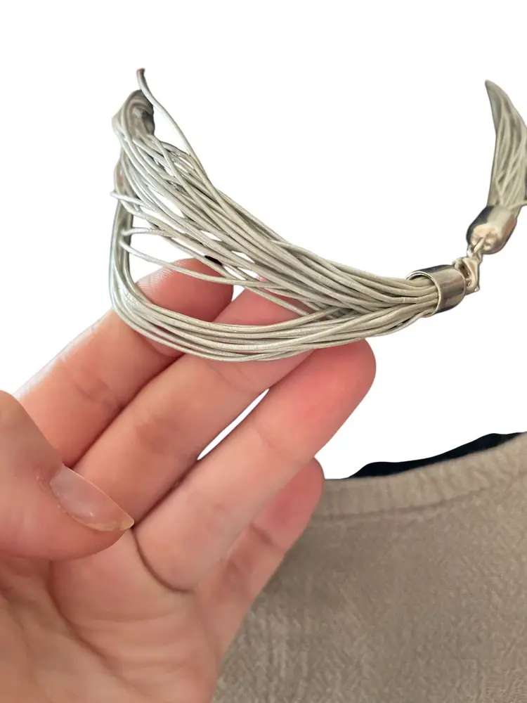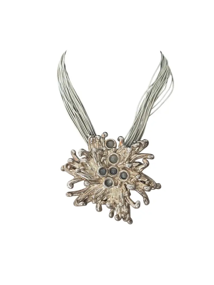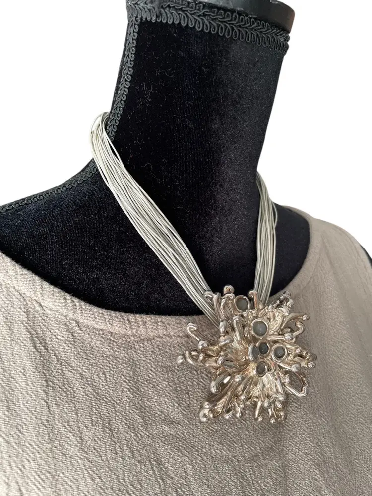 Necklace is the same designer sterling clasps and is made from multiple stands of fine leather cords. The moonstone pendant is RARE. Not many are currently available. There are a few pendants only with other stone types. I rarely see pendants available WITH their original leather cord necklace.