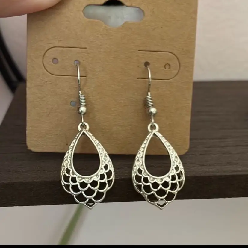Own these beautiful handmade metal earrings. Earrings hand approximately 1.75 inches from ear hole.