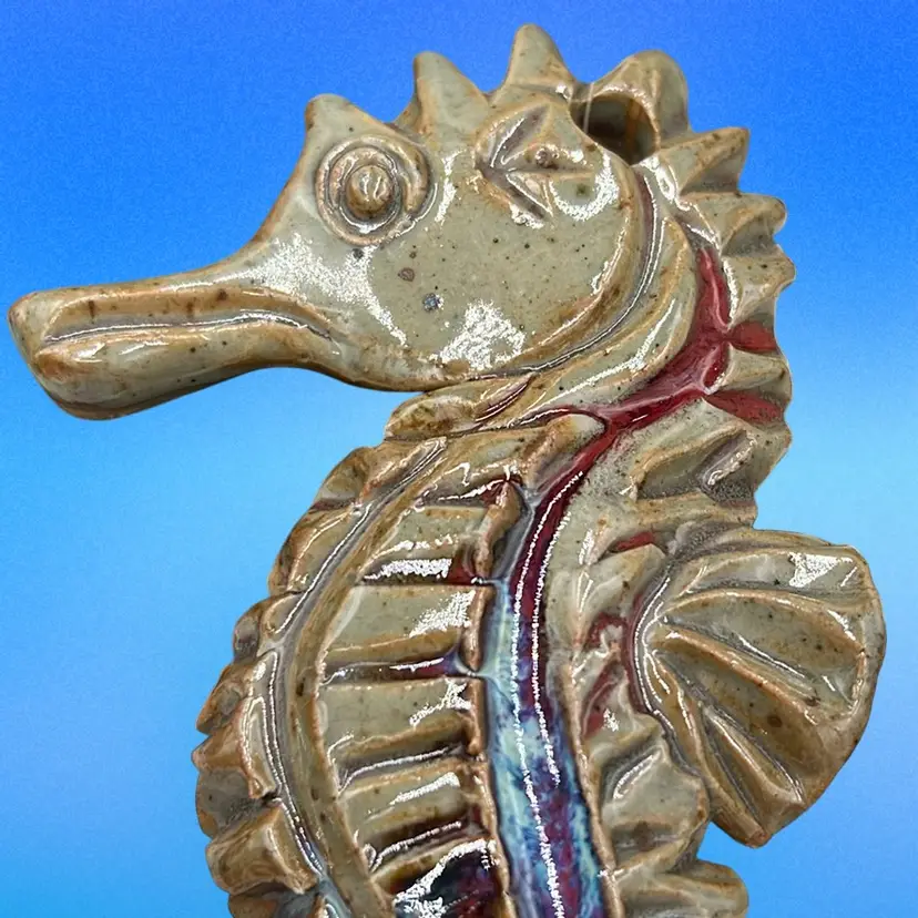 Beautiful Natural Colors Glaze, Clay Sea Horse Wall Plaque, 6”