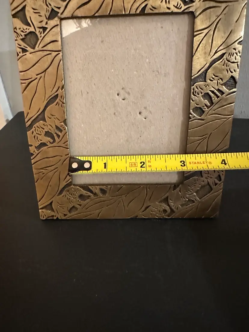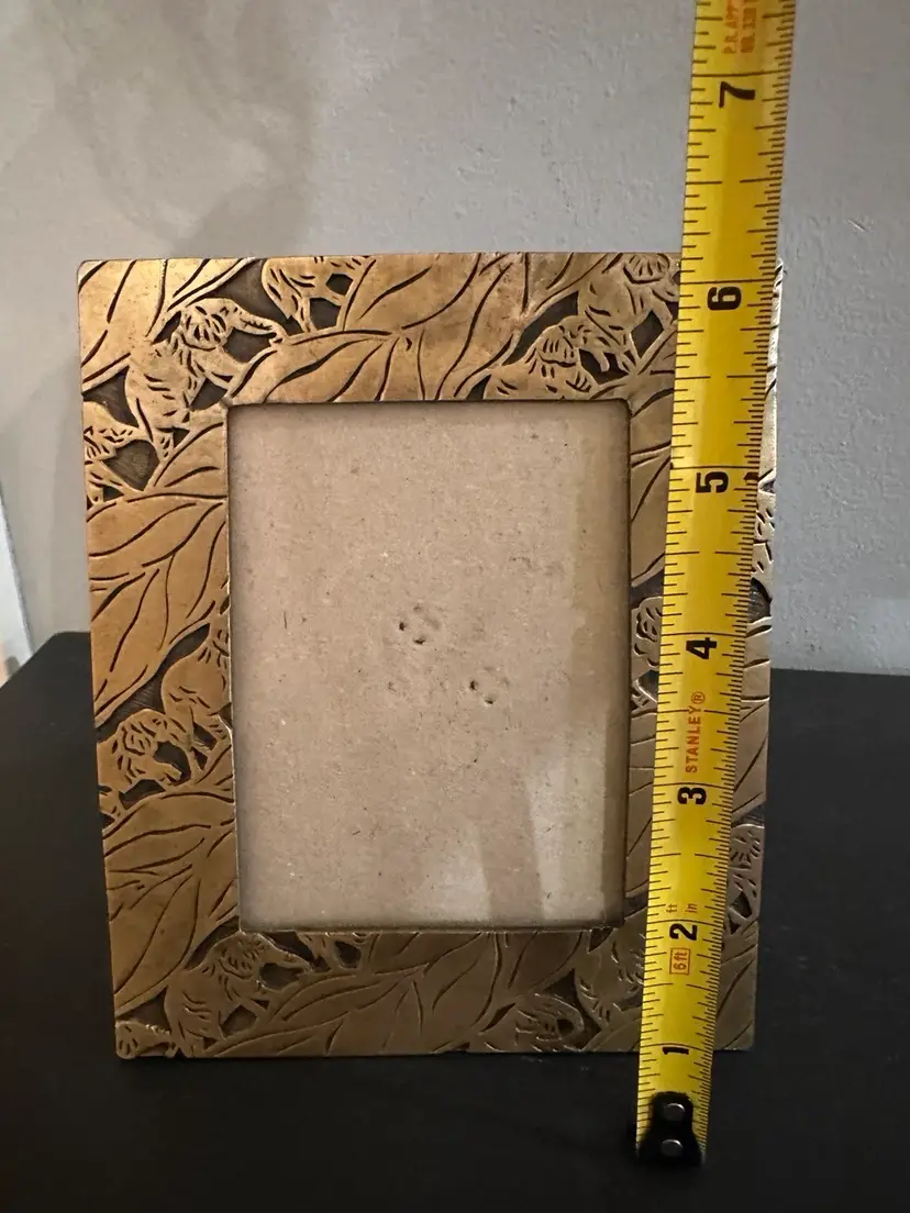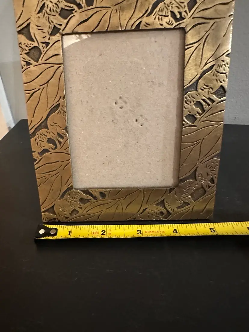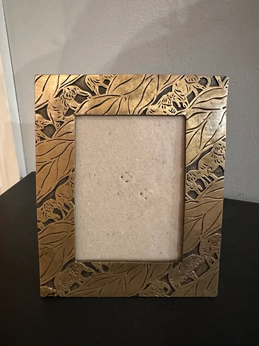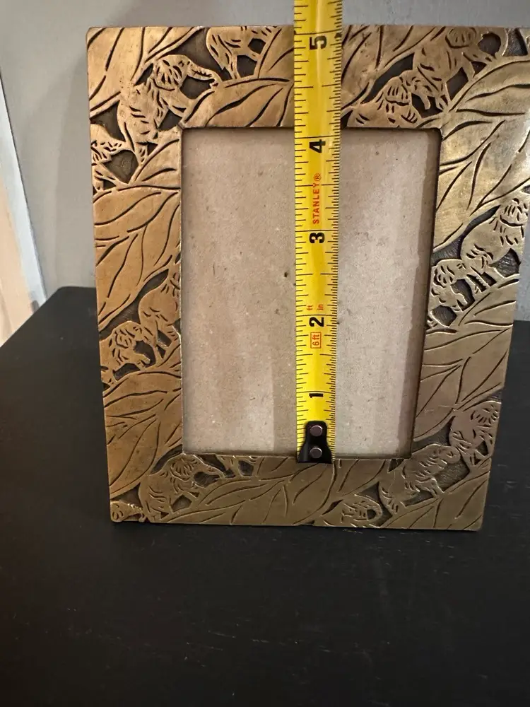 Beautiful Vintage Embossed Brass Elephant picture frame, measurements are included in photos.