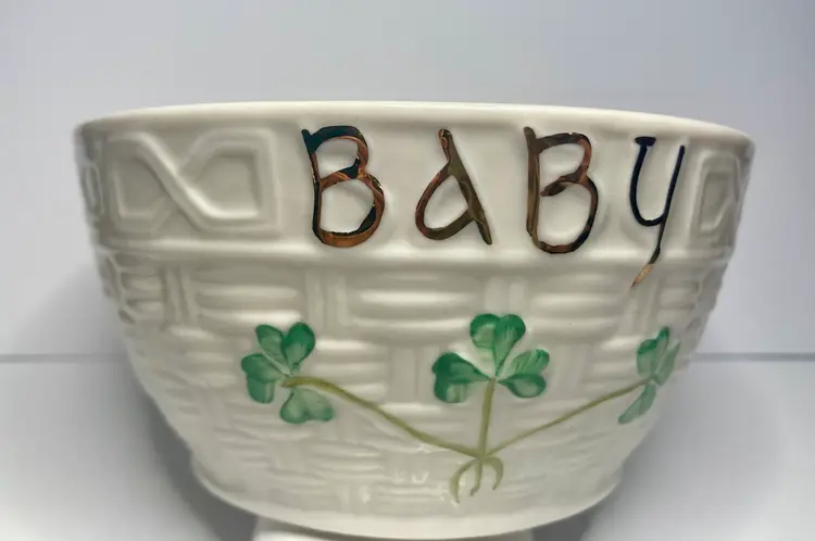 Beautiful Fine Irish Porcelain Bowl with Baby in gold lettering on both sides of bowl. Approx 4.5x2.25” This item ships from Toronto CA within 3 business days and shipping time is 5-10 business days. Combined shipping offer, this item will ship with any other purchase for additional $4.
