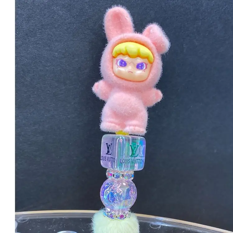 πβ¨ Berry Luxe Bunny Pop Pen β¨π Sweet, sassy, and ready to turn heads β the Berry Luxe Bunny Pop features a bubblegum-pink Hacipupu in a fuzzy bunny suit π°, stacked atop a clear iridescent bead and a double-sided LV-inspired square charm π. A soft lemon-puff pom π floats above a hot pink barrel hand-piped with sunshine-yellow frosting swirls and sprinkles. Itβs a pastel statement piece with a designer twist!