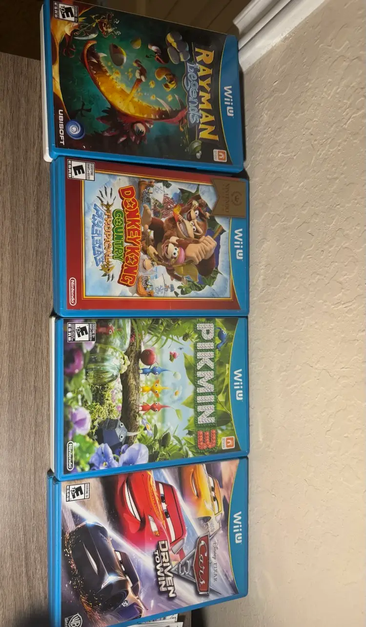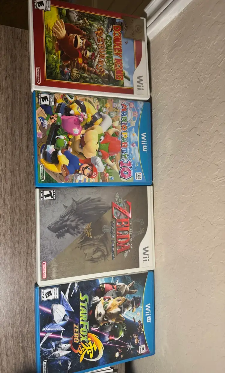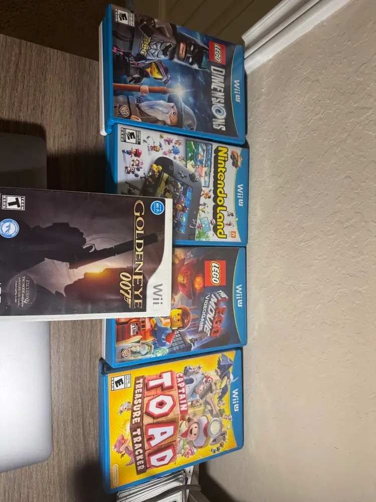 Games in Cases -Mario Party 10 -The Legend of Zelda Twilight Princess -Donkey Kong Country Returns -Donkey Kong Country Tropical Freeze -Pikmin 3 -Captain Toad Treasure Tracker -Rayman Legends -007 Goldeneye -NintendoLand -The Lego Movie Video Game -Starfox Zero -Lego Dimensions -Cars3