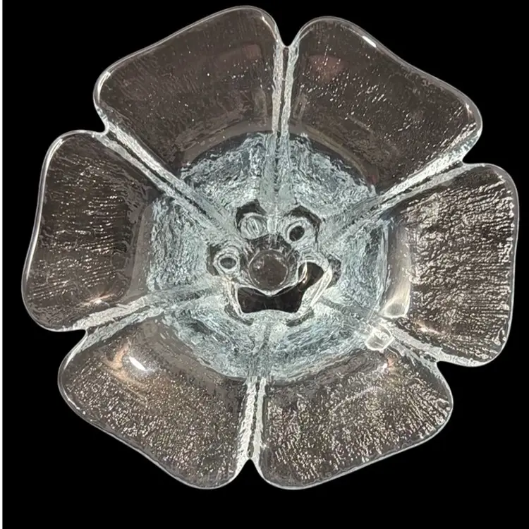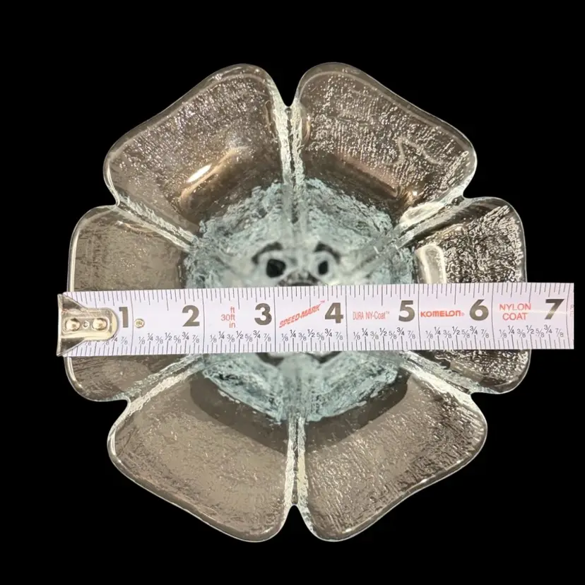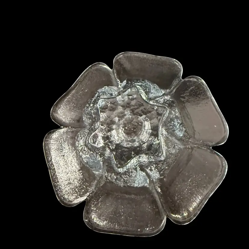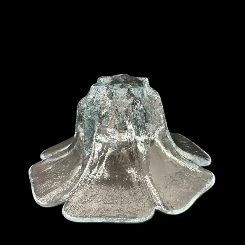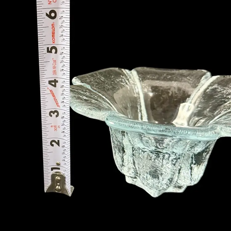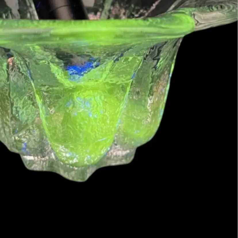 Pictures don’t do it justice. Beautiful heavy glass. Textured outside, smooth inside. Fits standard tapered candle. Manganese glow with 365 UVLight.