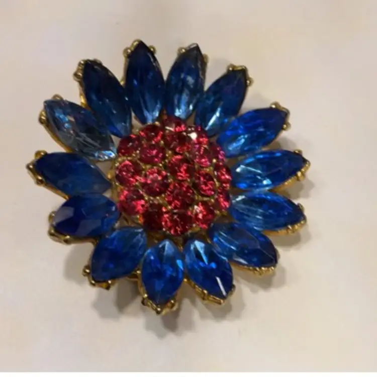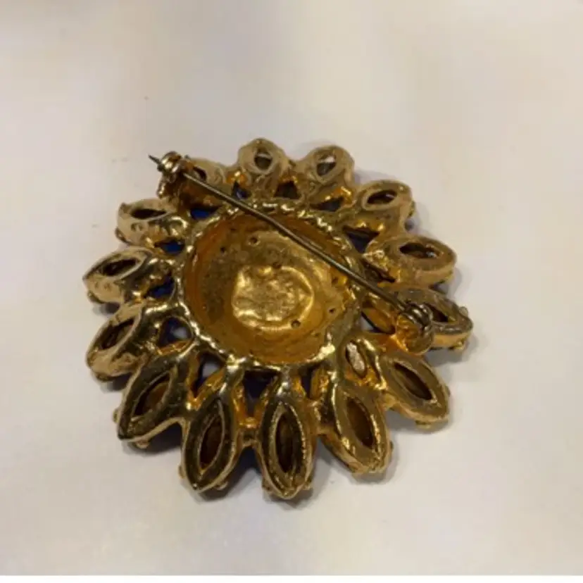 Brooch is unsigned beauty. Measures 1 3/4” in circumference and 1/2” depth.