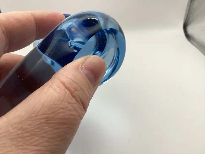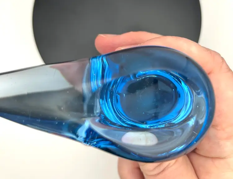 No chips or cracks. Has a dimple from manufacturing. Possibly Swedish. Beautiful blue!