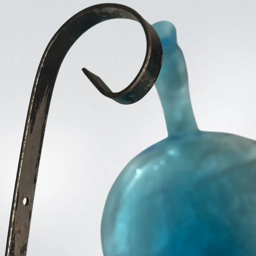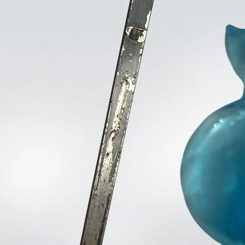 No chips or cracks. Metal piece is different colors. 12-1/2” l x 4” w on metal piece. Bottle 9-1/4” l x 5-1/4” w