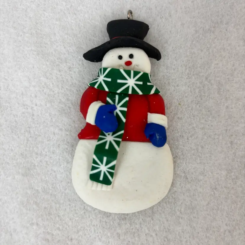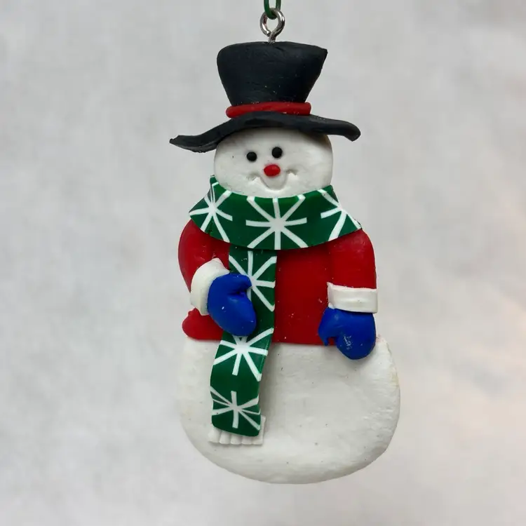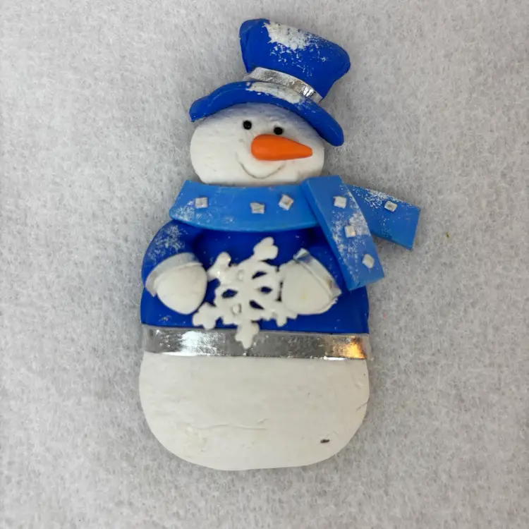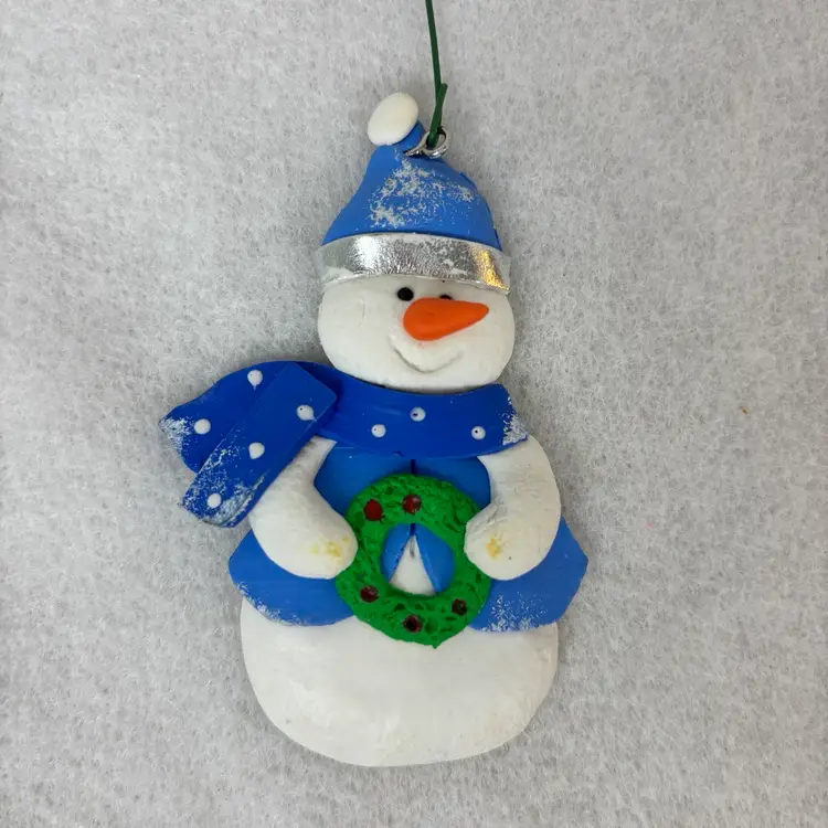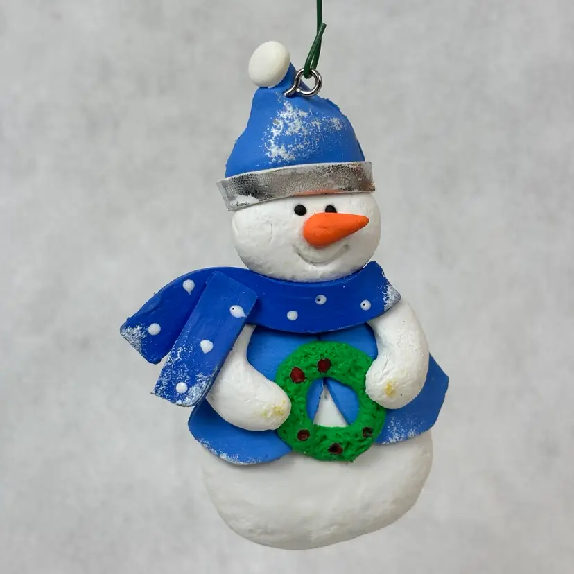 Blue hat snowman - Handmade Polymer Clay Snowman Ornament