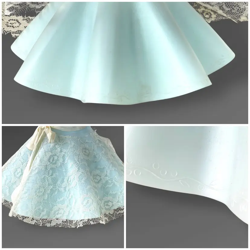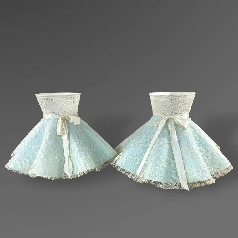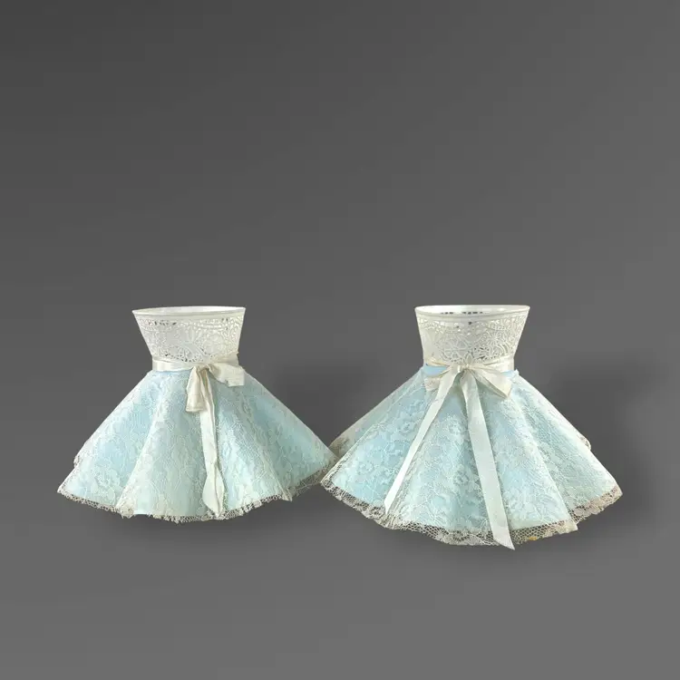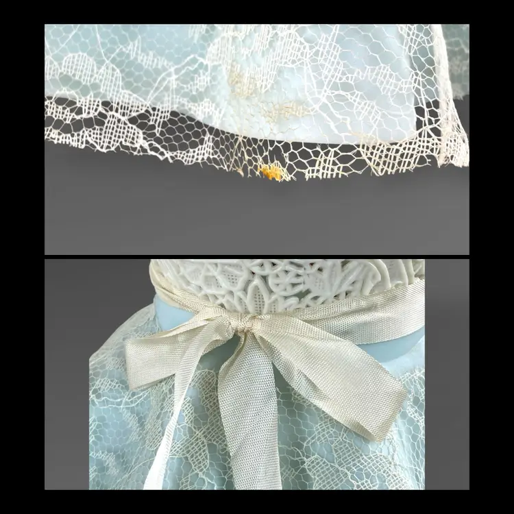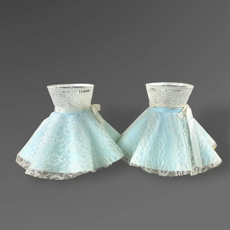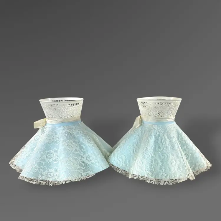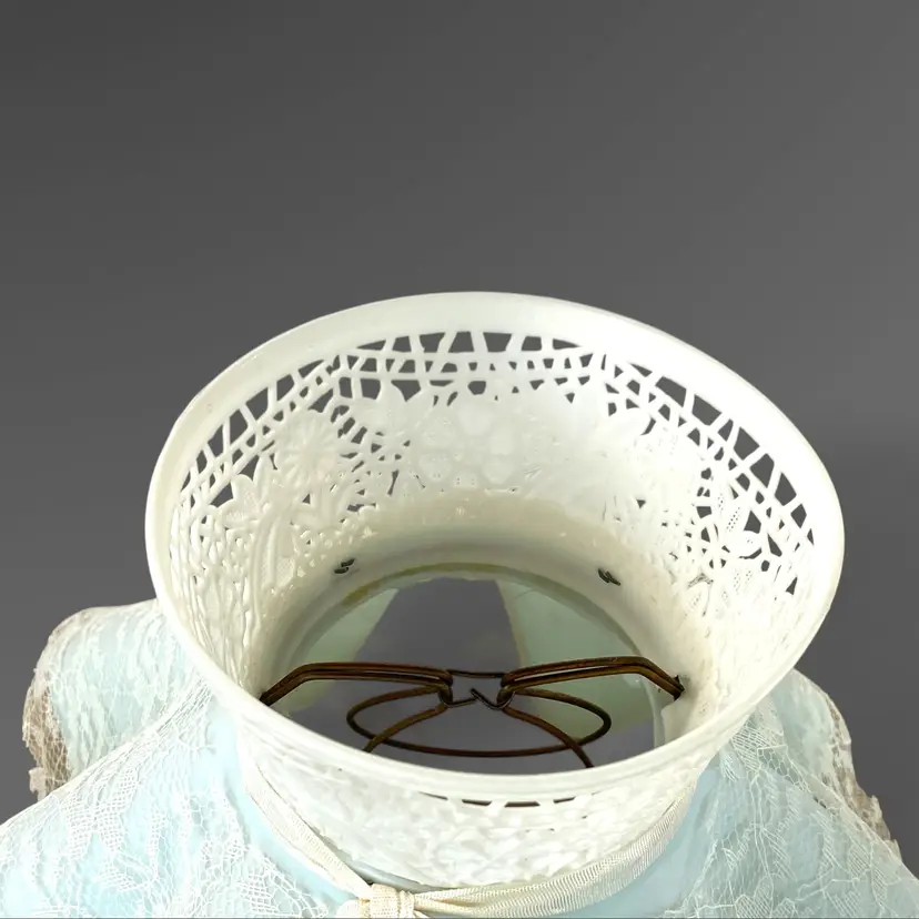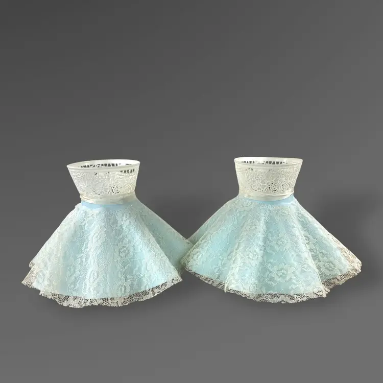 Vintage Blue Plastic and Lace Lamp Shades Set of 2 Boudoir or Vanity Lighting