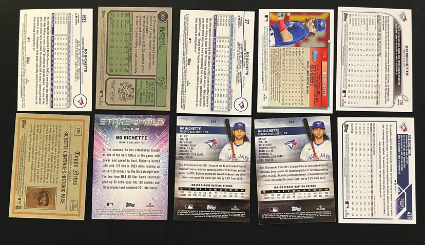 You are bidding on a lot of 10 Bo Bichette baseball cards.