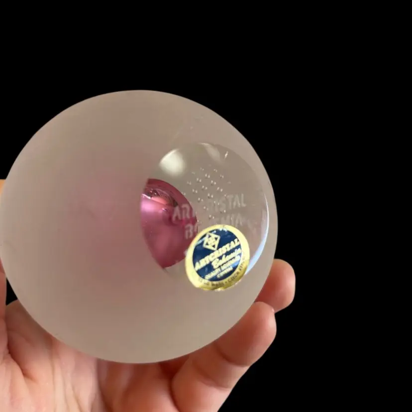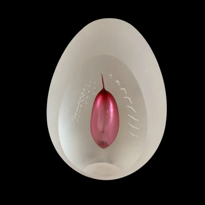 Delightful frosted glass with a hint of pink egg shaped paperweight, No chips or cracks, a few small scuffs on the frosted glass. 2.25x3.5”