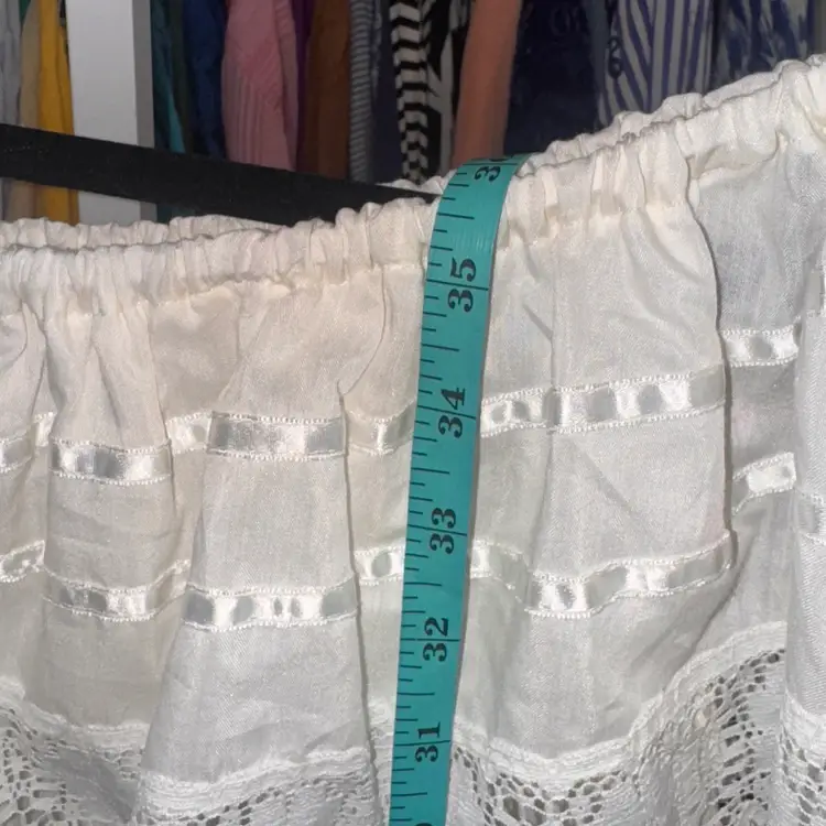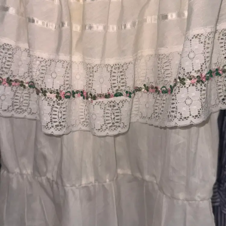 Fantastic white with embroidered accents along the entire dress. Dress it up with boots and hat and a western belt. Please see picture for measurements and best fit