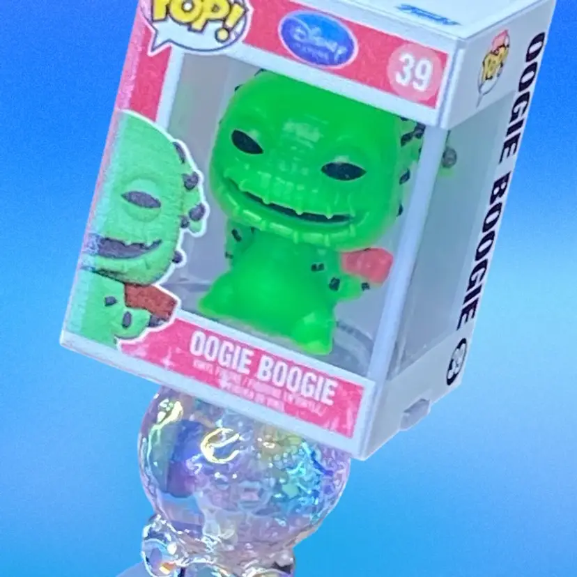A mischievous twist of Halloween charm and handmade sweetness! This green dream features a Bitty Pop! Oogie Boogie topper stacked atop iridescent and frosted beads, with a neon puff accent on a sleek emerald barrel. Itβs spooky, sparkly, and seriously cute. π»β¨