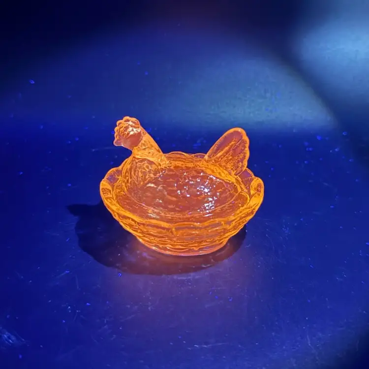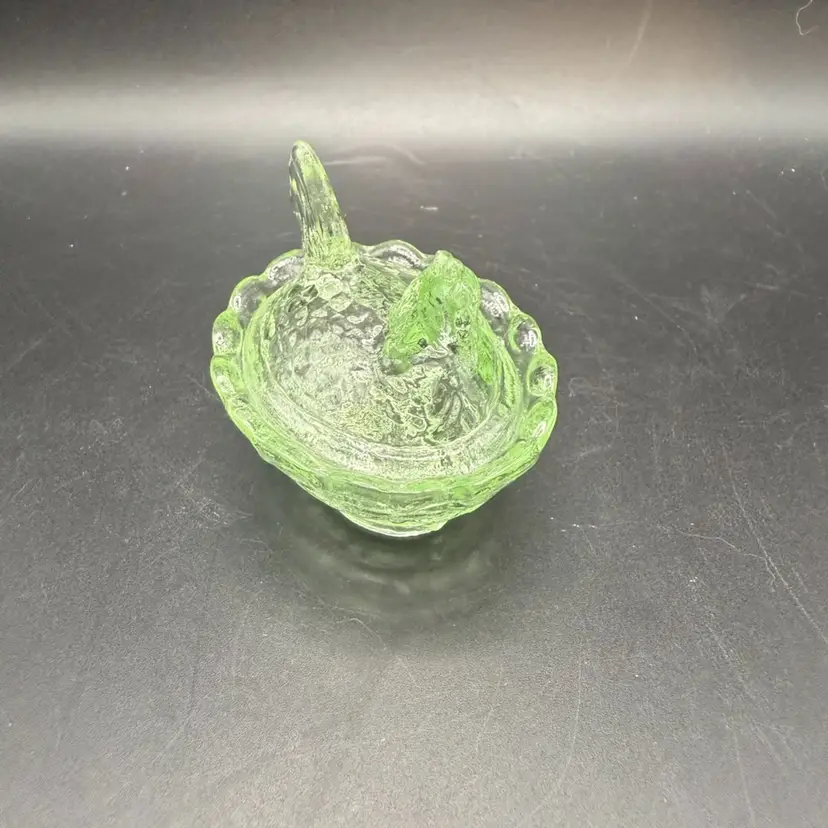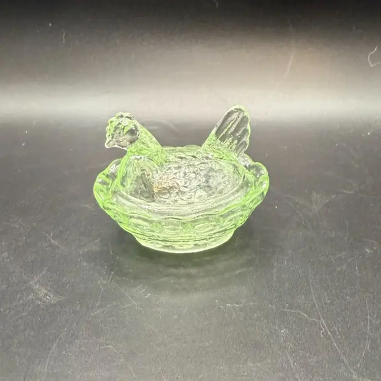 Boyd Glass Company, founded in 1978 in Cambridge, Ohio, became a prominent producer of these collectible glass animals and figures, including the popular hen-on-nest design. They often used molds from older companies and produced pieces in a variety of colors, including the distinctive peridot green associated with Vaseline glass. These items are typically collected for their aesthetic appeal, historical connection to American glassmaking, and the unique properties of Vaseline glass.