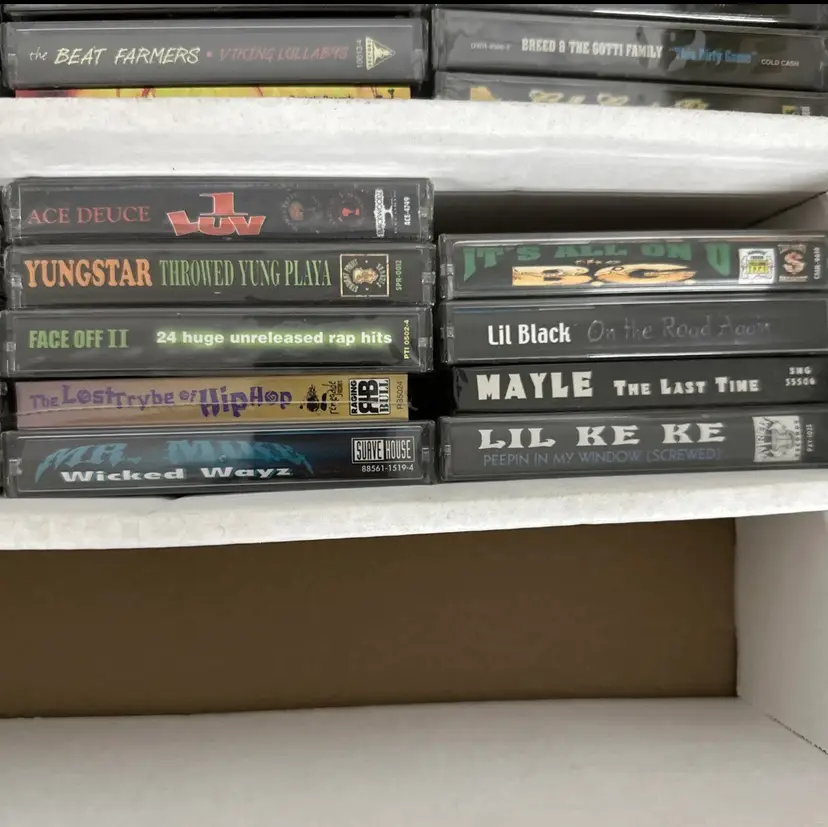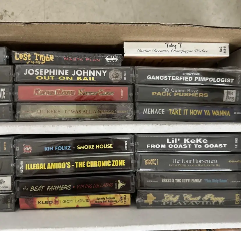 Lot of 53 sealed cassettes all are Hiphop/Rap genre , Amazing Wholesale Lot with high resell value Each Cassette has a average sale price of about 14 dollars on EBay & Amazon🚨 Great opportunity for resellers!