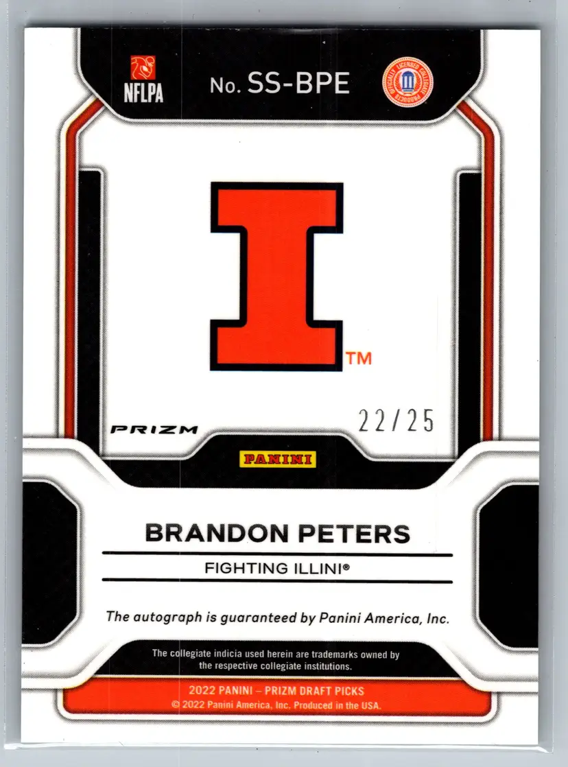 Brandon Peters 2022 Panini Prizm Draft Picks Sensational Signatures Green Pulsar parallel, serial numbered /25. Features a bold sticker autograph and ultra-limited short print finish. Great rare pickup for collectors of low-numbered draft autos and QB prospect chasers.