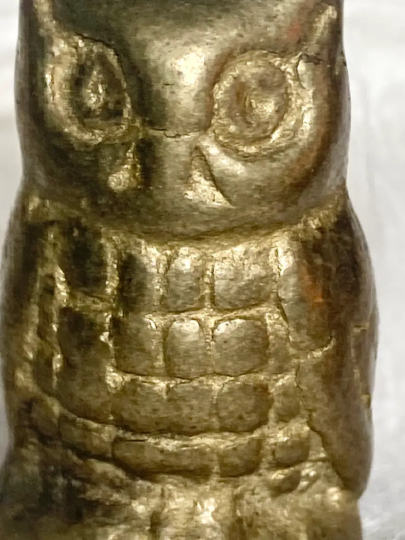 This vintage brass owl figurine is a beautiful addition to any collection.