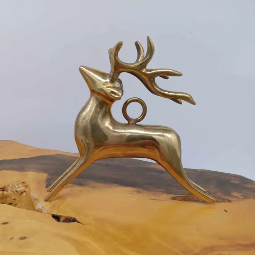 Here's a sweet little brass reindeer. He has a loop for hanging and is 4 x 4 3/4 inches. Very nice condition.