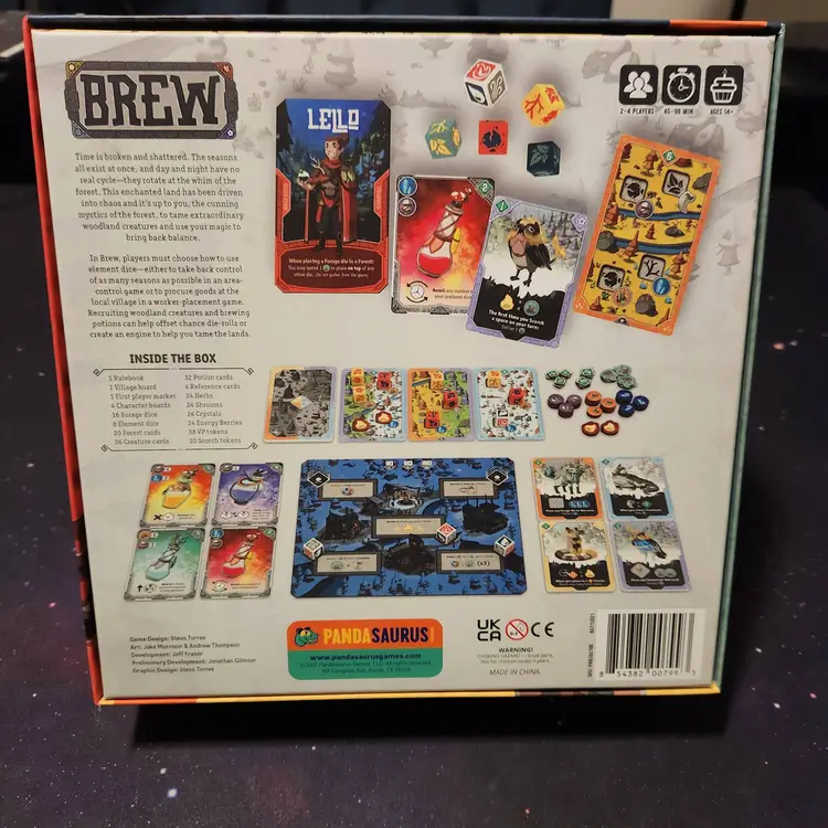 Step into a mystical forest with Brew, the beautifully illustrated dice-rolling and area control game from Pandasaurus Games! In this game, you'll harness the power of nature, tame creatures, and brew potent potions to restore balance to a fractured world.