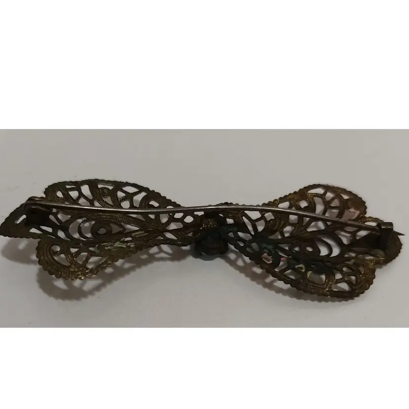 Very Nice Antique Victorian Filigree Brooch With Beautiful Light Blue Gem Embellishment Surrounded by Soft Pastel Hues; Circa 1800's; Very nice Condition; just over 2.5" W x 1" L
