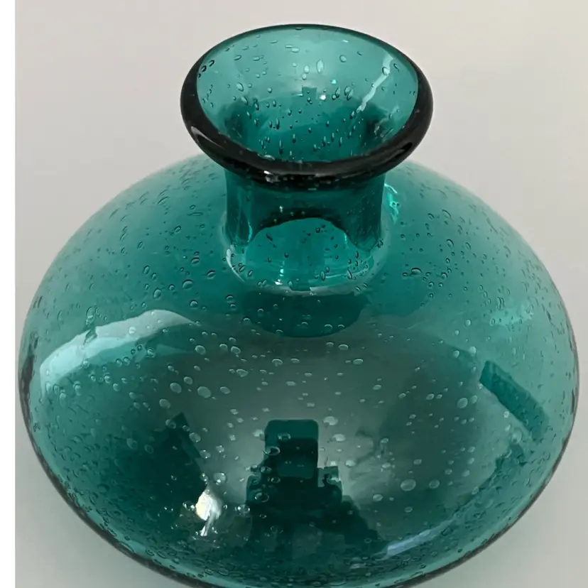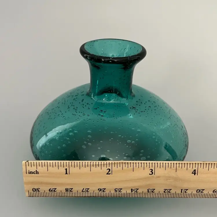 Lovely little Bottle Vase in a familiar Sea Mist Green. The bottom is finished with a torch marked pontil. It is a great size for flowers or simply for display. This piece is in excellent condition. A great addition for a collector of Vintage Blenko Glass, Vases and Green Glass.