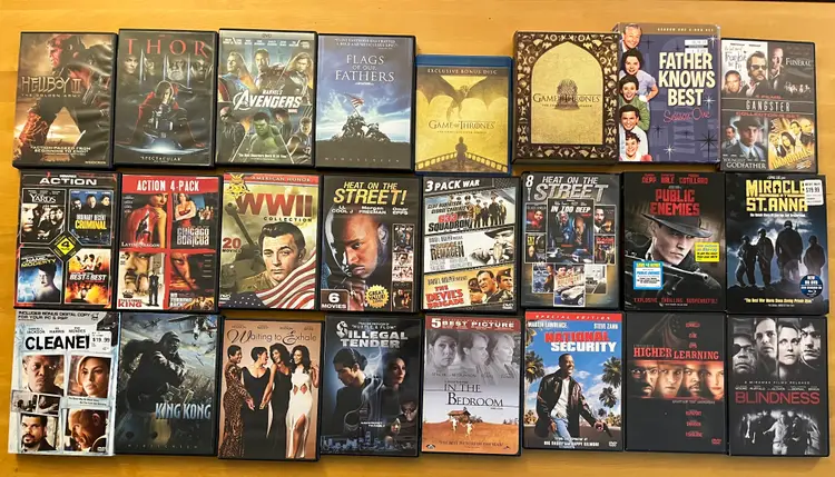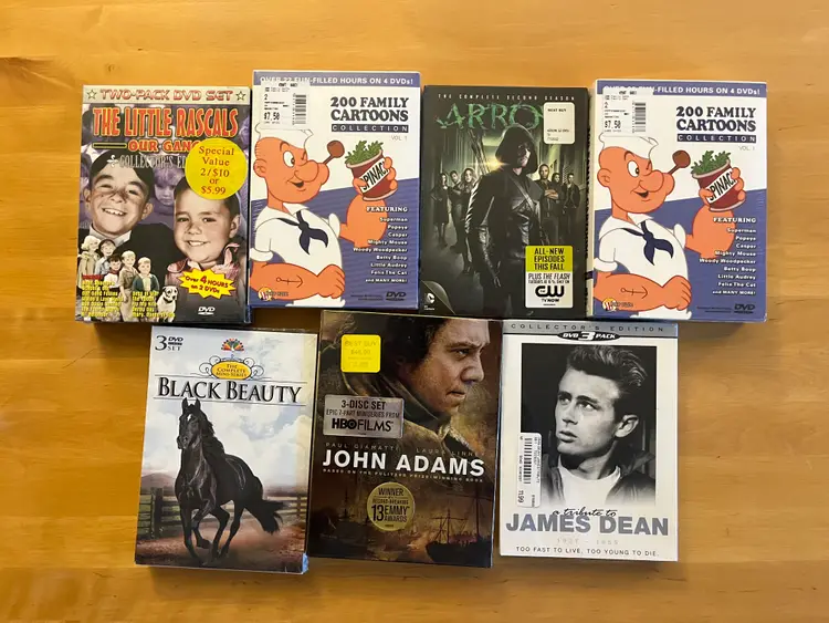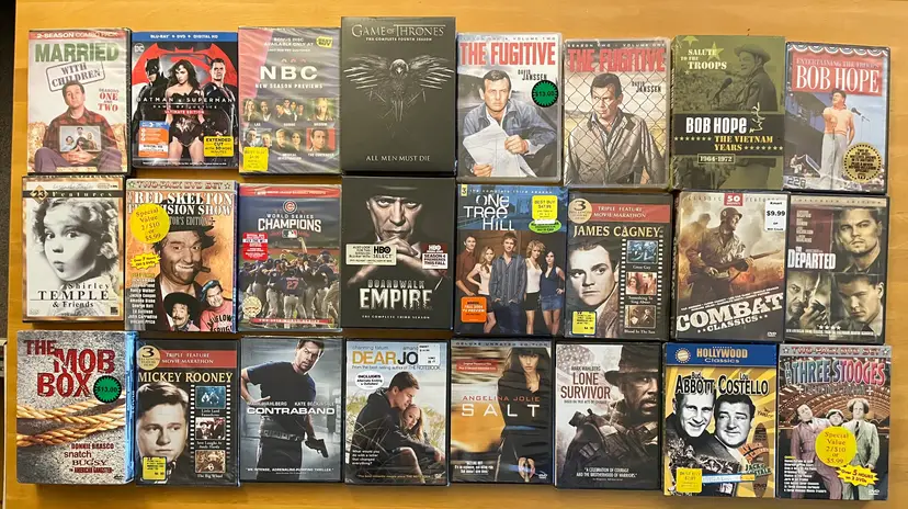 There are 56 dvds/seasons that are new factory sealed copies. The remainder have been previously viewed.
