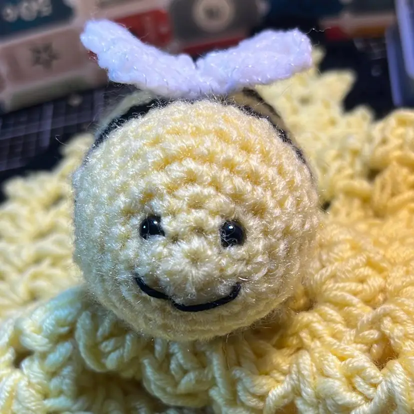 Wrap your little one in comfort with this hand-crocheted blanket lovie — the perfect blend of softness and security. Just the right size for tiny hands and big hugs, it's a cozy companion for naps, travels, and tender moments. Hand crocheted by me. Blanket measures 12” x 12”