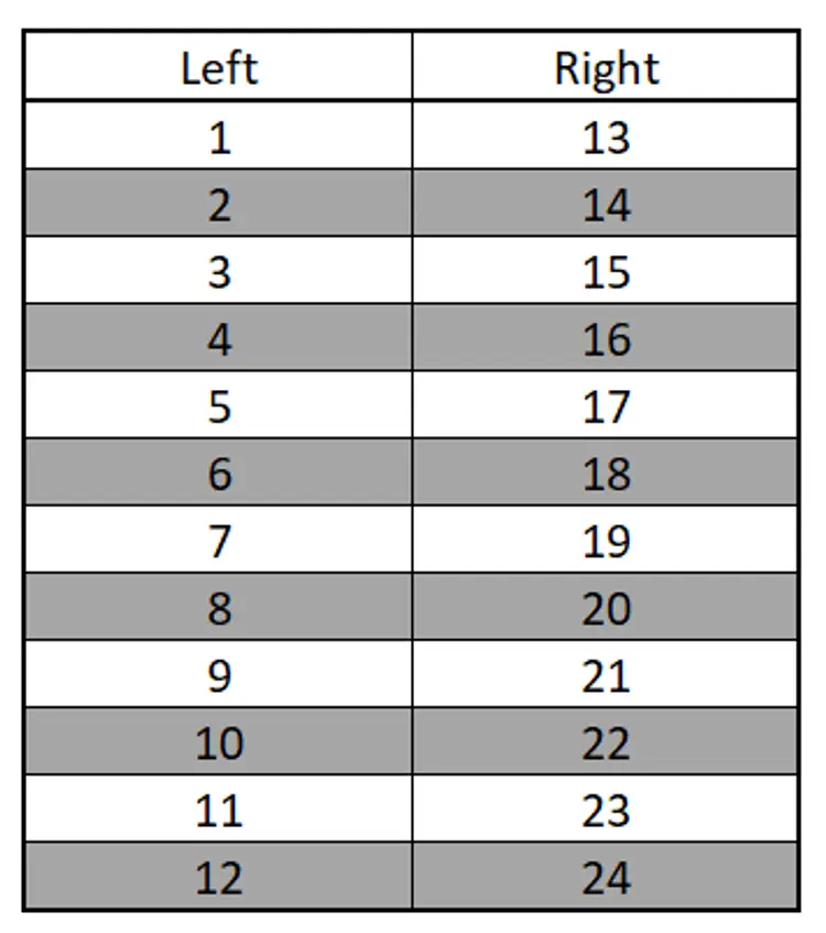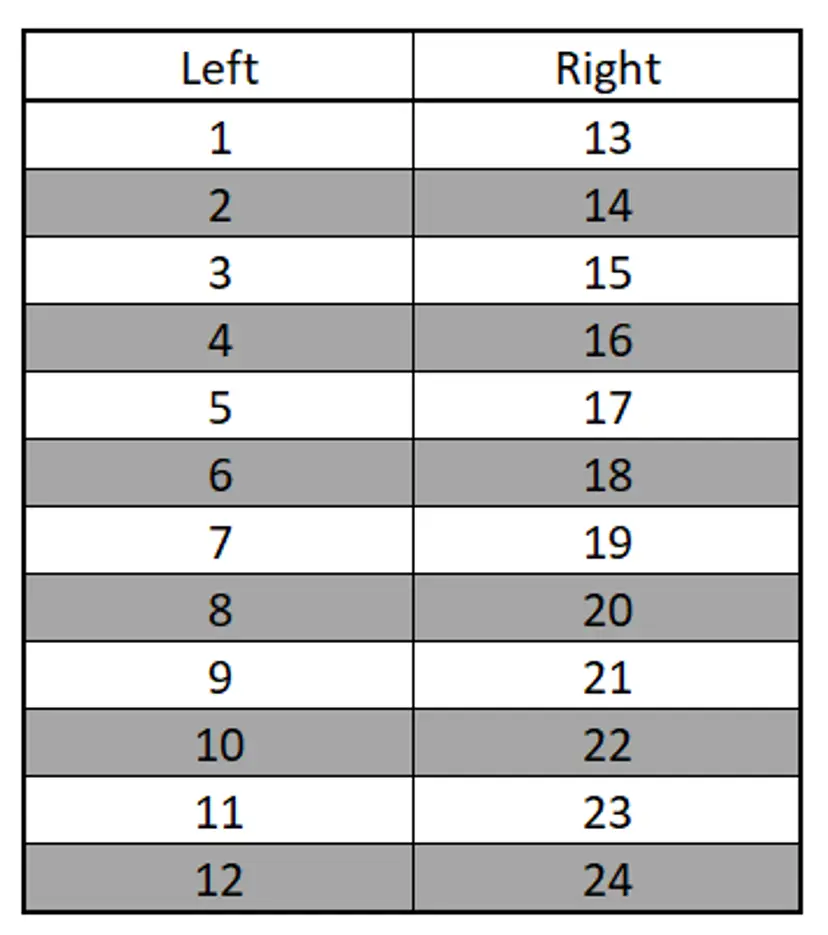 I will be pulling packs as illustrated in the janky picture I made on Excel! Flap facing away from me, left side/top down packs 1-12 and right side/top down packs 13-24.