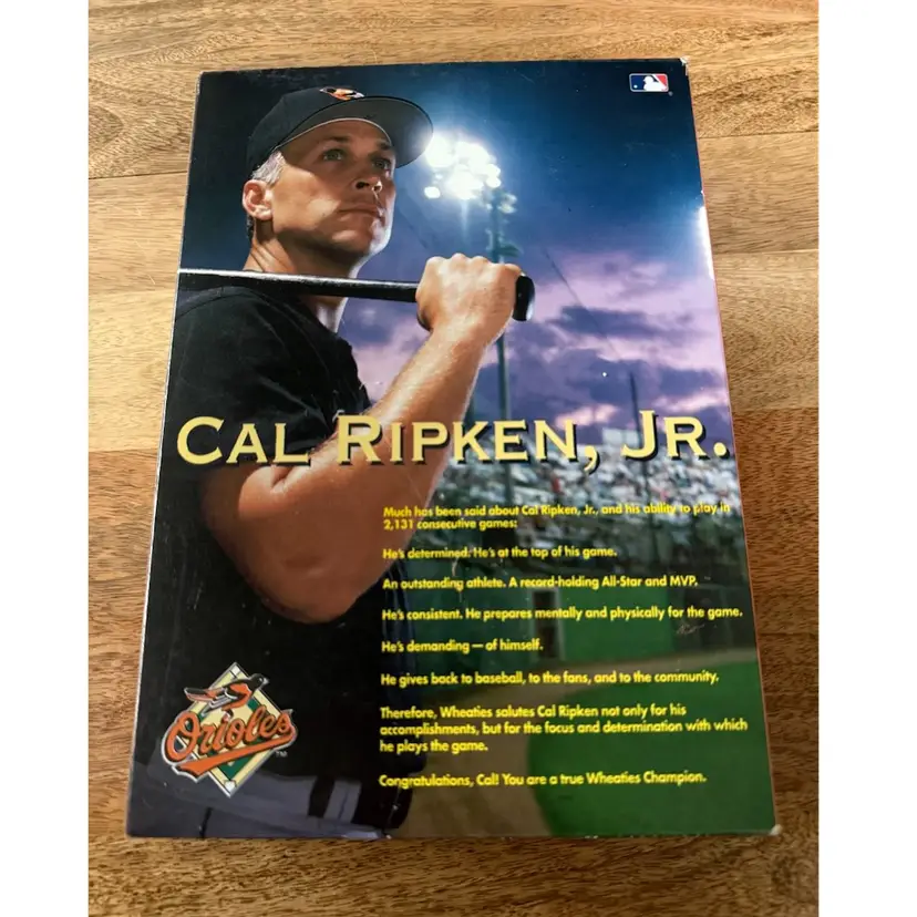 Wheaties box celebrating Cal Ripken Jr’s record games played streak. Box is emptied (without cereal).