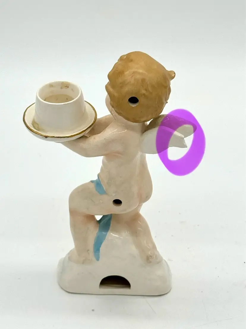 ONE MISSING SMALL TIP OF WING; OTHER IN TWO PIECES - EASILY REPARABLE- PIECES FIT TOGETHER PERFECTLY