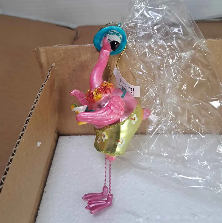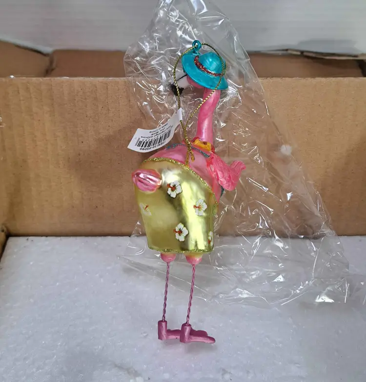1 case of 36 December Diamonds 6" Flamingo glass ornaments