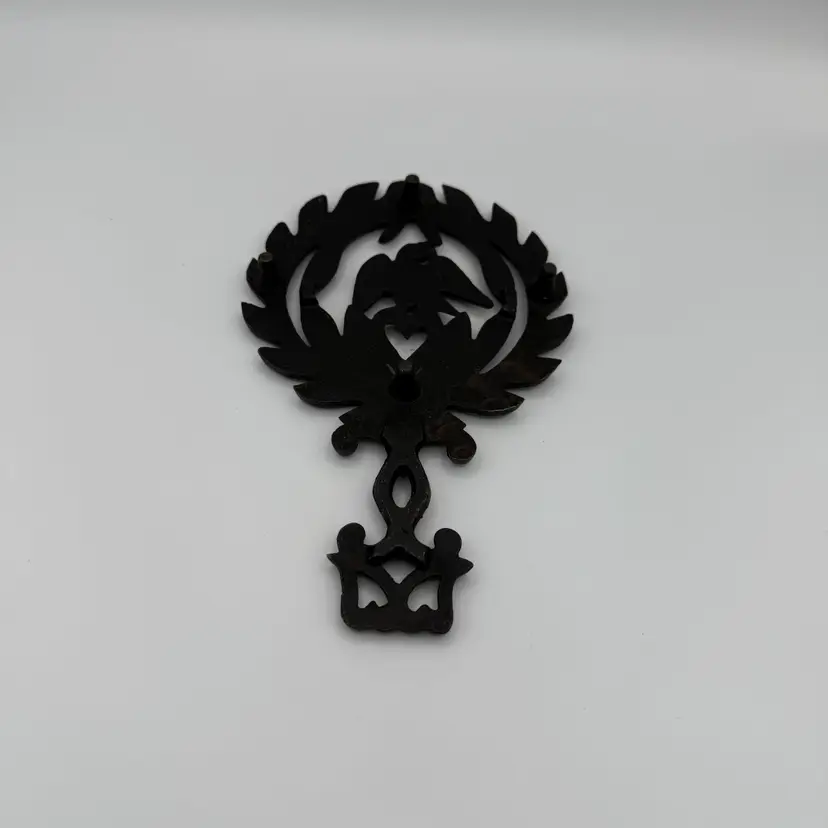 Cast Iron Trivet - Featuring an eagle, heart, and a laurel wreath. 4 legged design. Vintage or Primitive decor. 8" X 5 1/4"