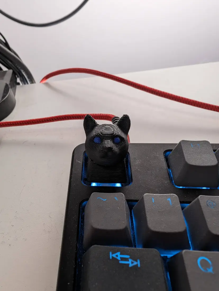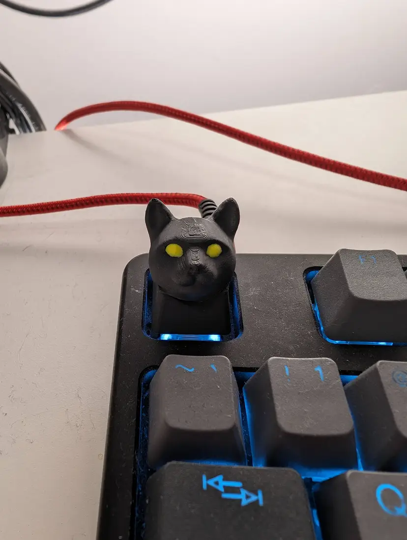 This cat head artisan keycap brings much needed cat-itude to any mechanical keyboard. The custom made keycap has an MX stem that fits on any MX switch (including box style switches).