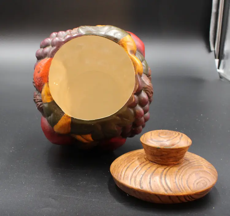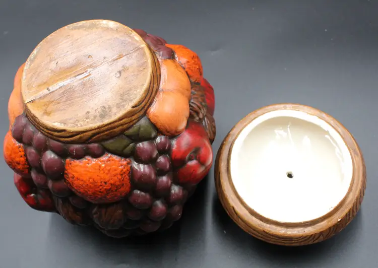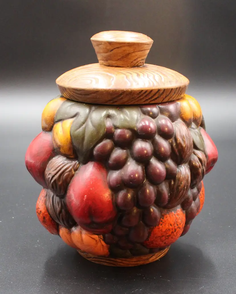 Oh So 70's! I think my Mom made something similar to list when I was a kid. Throwing in a Turkey Cookie Cutter so you can fill the jar with tasty treats! No chips, cracks or stains. 10 inches tall and 7 inch diameter
