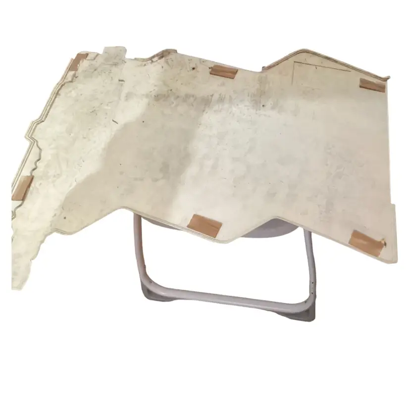 Thin plastic with some cracked and or missing edge pieces. Still displays great. 27”x21”