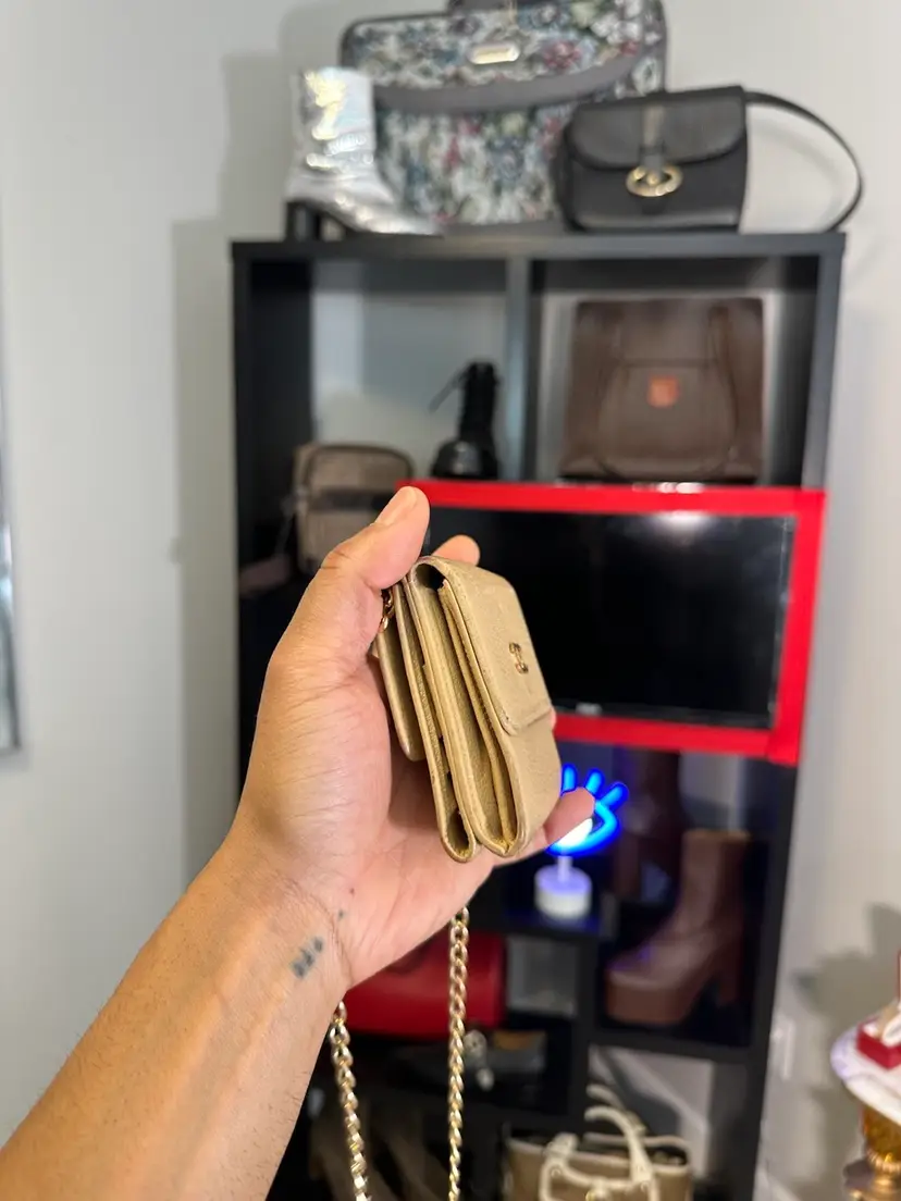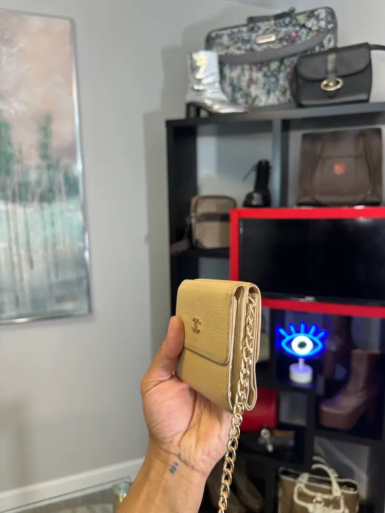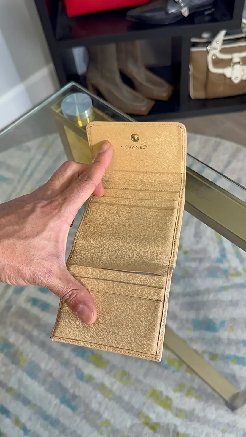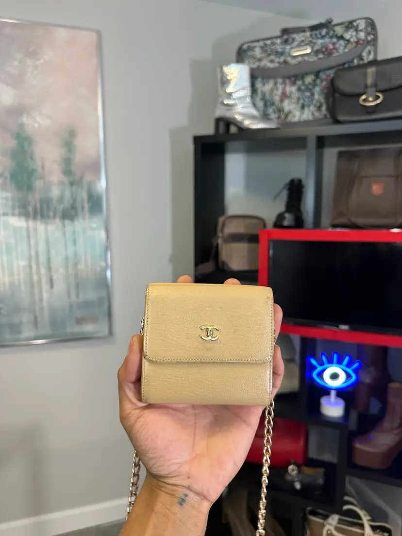 Chanel Vintage Compact leather wallet Full set Comes with auth card Box and felt Cc logo on front Serial number intact Preloved Chain shown for display purposes inquire to bundle