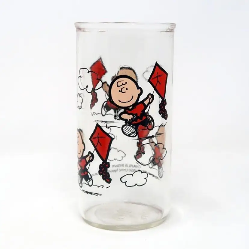 Enjoy your favorite drink with this charming Charlie Brown Kite-Flying Jelly Jar Glass from Kraft. Featuring Charlie Brown in his classic kite-flying scene, this glass is a delightful addition to any Peanuts fan's collection. Perfect for everyday use or display.
